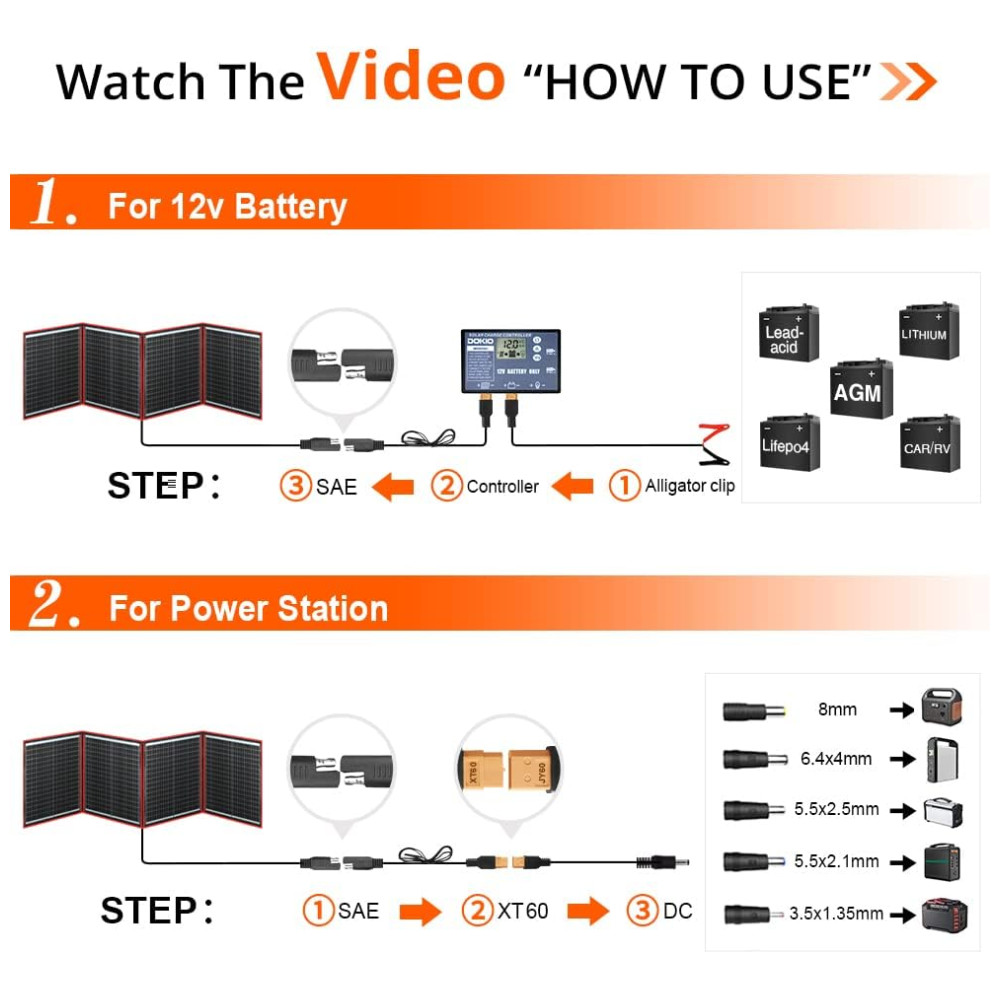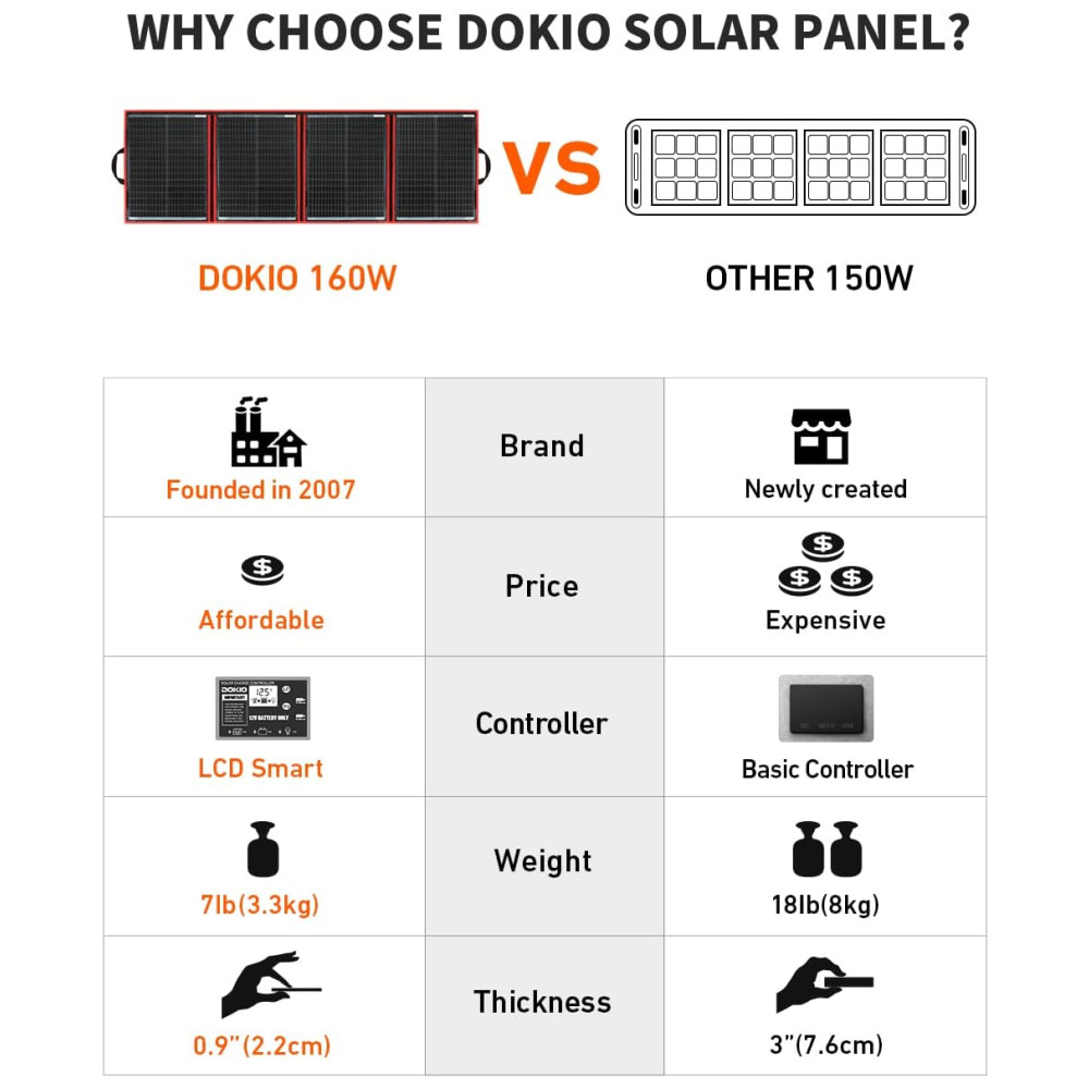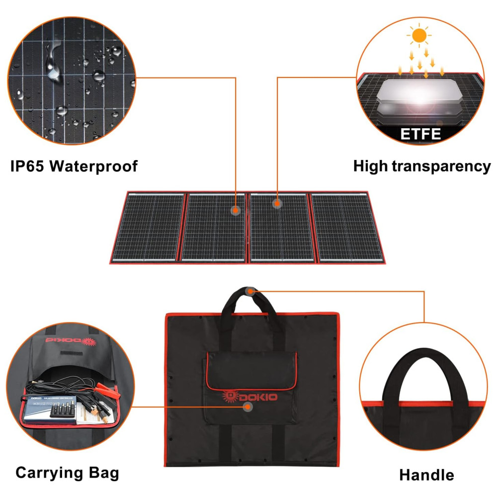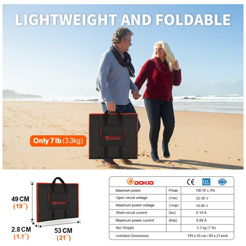 DOKIO Kit Painel Solar dobrável monocristalino c controlador de carregador 160W 12V 1 unidade