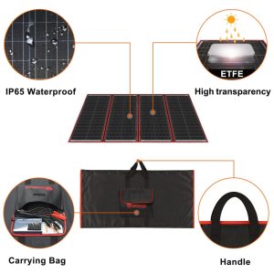 DESIGN DOBRÁVEL E PORTÁTIL O painel fica bem protegido em um bolso de tecido grosso costurado. Uma alça de transporte prática está disponível, fácil de transportar e usar e com, Ideal para acampar, acampar, escalar, caminhar, fazer piquenique, carregar a bateria do seu carro ou em emergências.