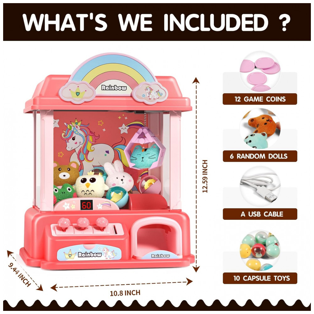 DOLIVE Claw Machine para Crianças Mini Máquina de Garra Unicórnio Rosa Jogo Eletrônico com Música para Idade 4 a 10+