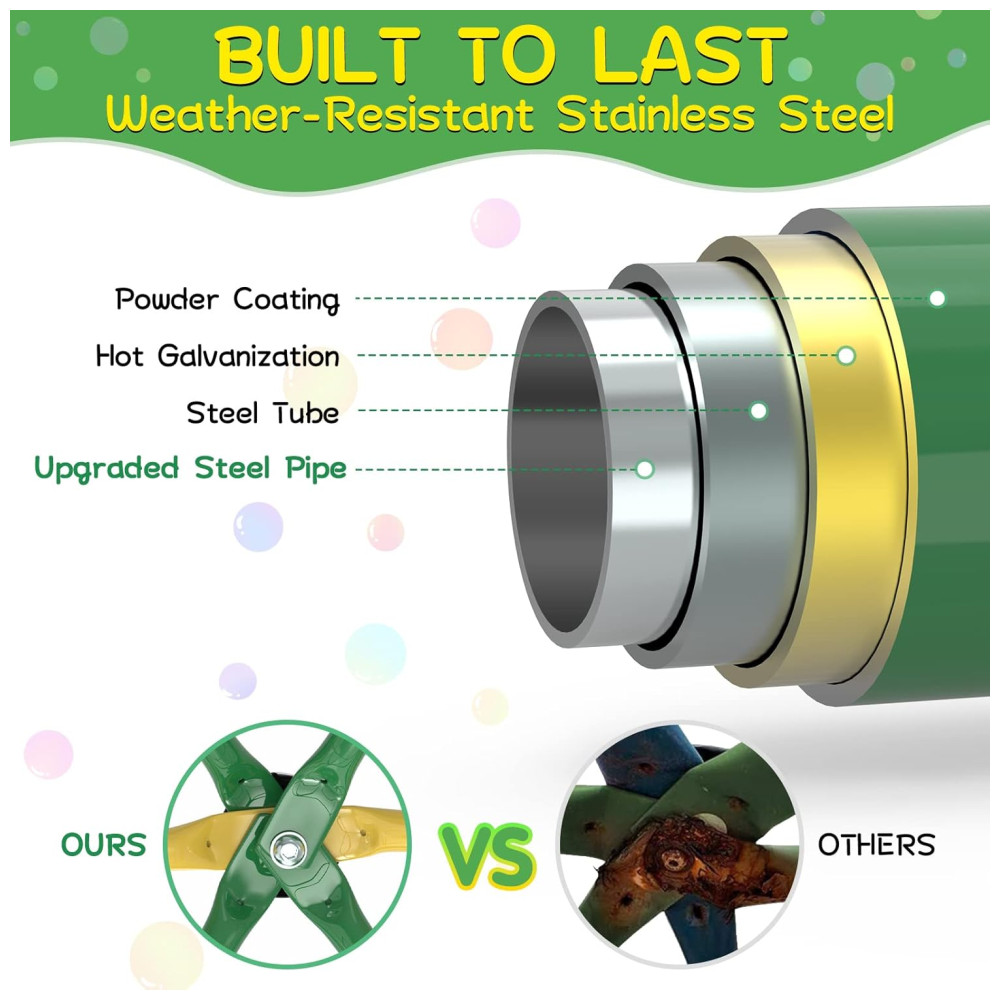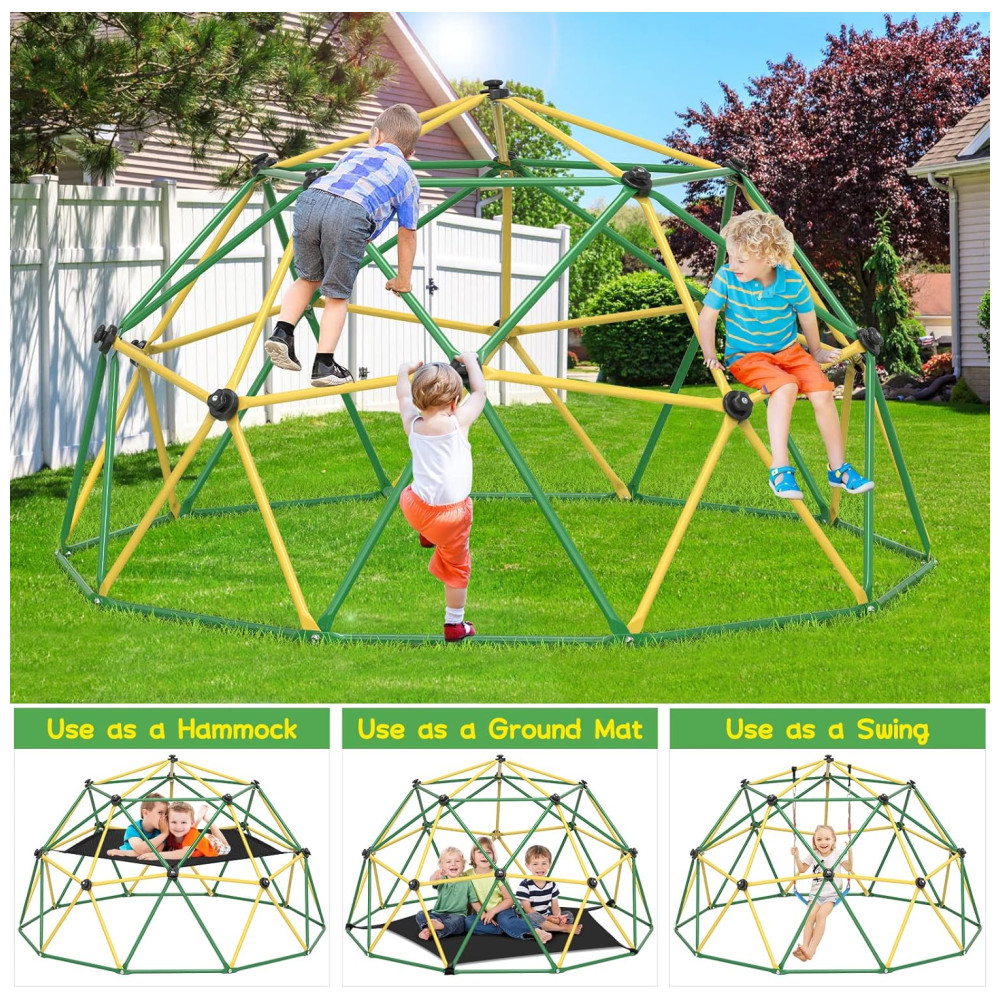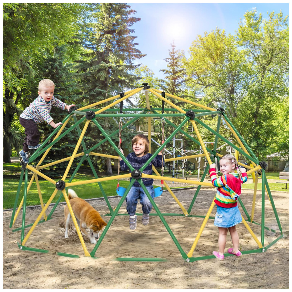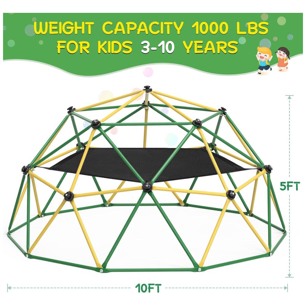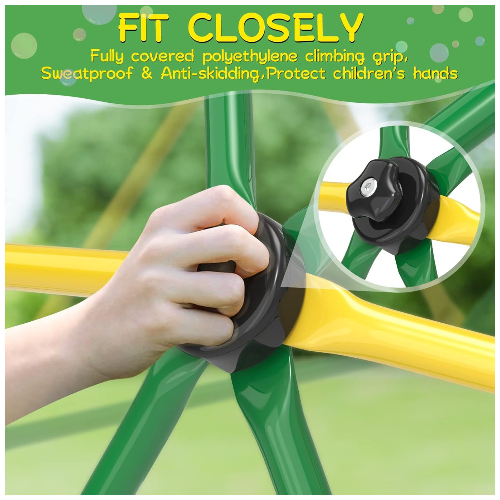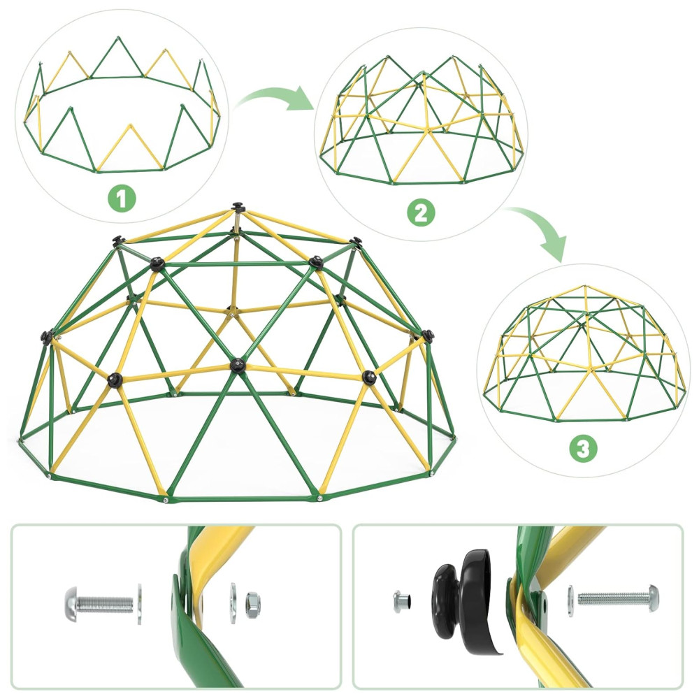 Cúpula de Escalada GIKPAL 3 Metros com Rede para Crianças Estrutura Resistente em Aço Galvanizado Anti-Ferrugem Amarelo e Verde