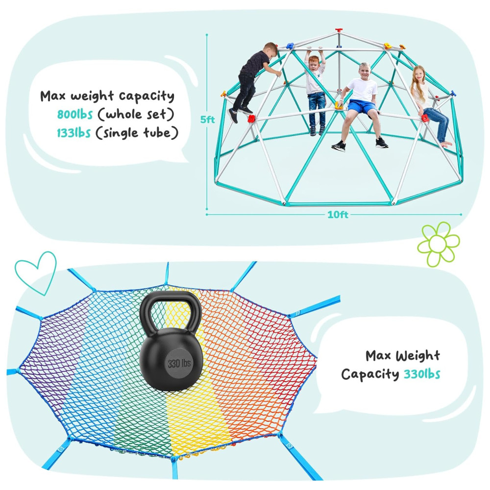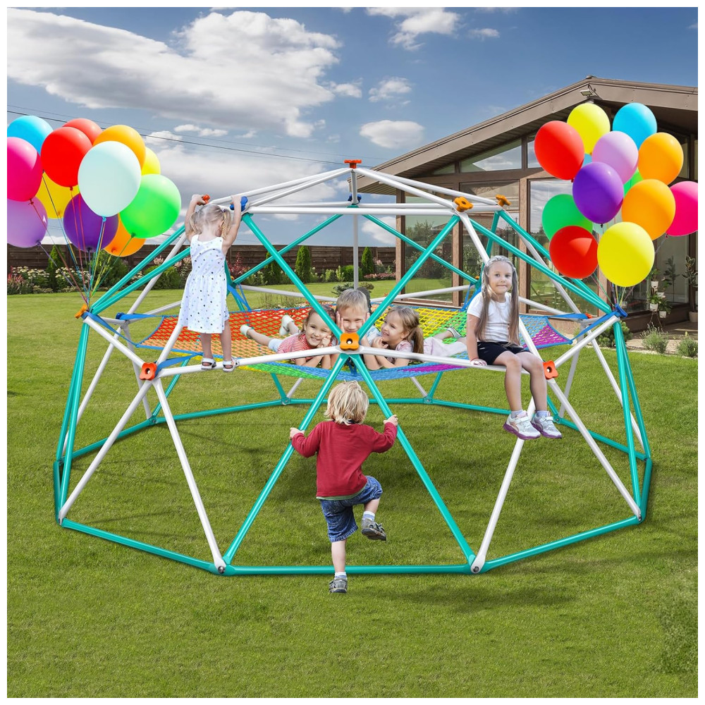 A Hapfan projetou esta rede de cordas exclusiva para o domo de escalada de 3 metros. Com 10 pontos de suspensão, distribui a força de maneira uniforme. Perfeito para várias crianças brincarem ao mesmo tempo. Construído com 65 tubos de aço resistente à ferrugem, suporta até 362kg no total e 60kg por tubo individualmente. Serve como um escalador estável e independente, sendo leve o suficiente para movê-lo facilmente. Com este brinquedo de escalada Hapfan, as crianças podem se divertir escalando, pulando, rastejando, deitando e descansando ao ar livre. O jogo ativo ao ar livre ajuda as crianças a crescerem saudáveis e felizes. Instruções detalhadas e vídeo de montagem estão disponíveis. Recomenda-se a montagem por duas pessoas. Dimensões do produto: 304,8 x 304,8 x 152,4 centímetros. Peso do item: 36,2 quilos. Idade recomendada pelo fabricante: 36 meses – 10 anos. Marca: Hapfan.