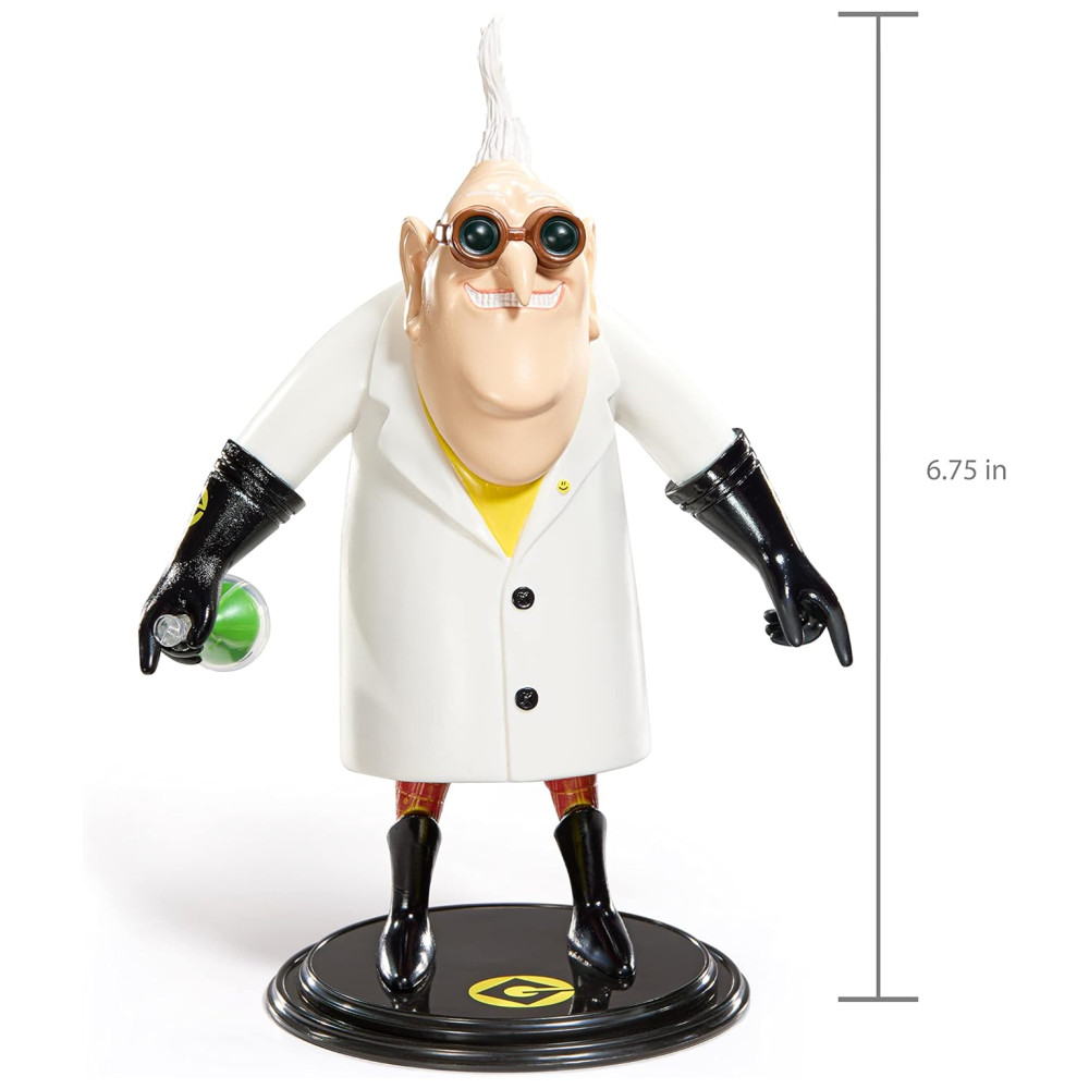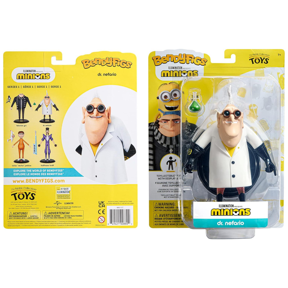 A BendyFig do Dr. Nefario vem acompanhada de um acessório de copo de laboratório e um suporte para exibição, tornando-a ainda mais especial para os fãs da série.