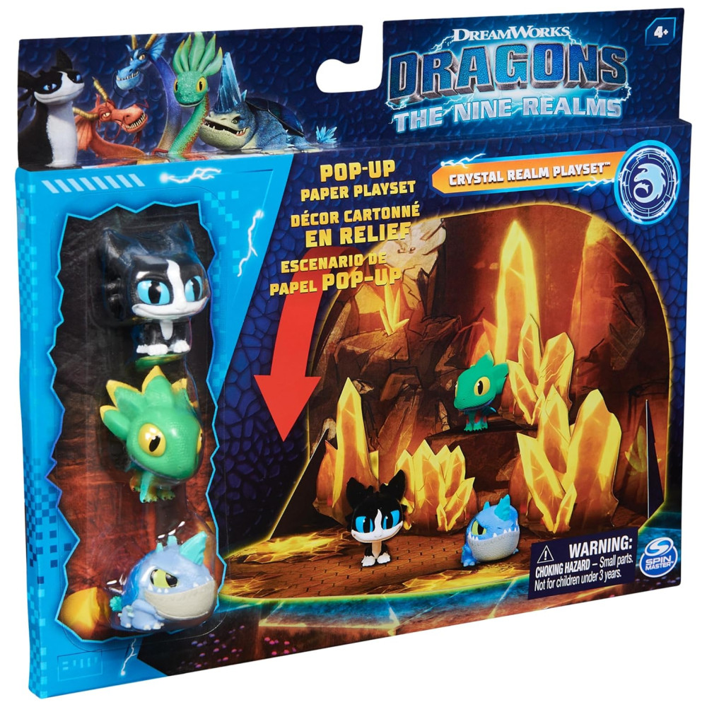 Dreamworks Dragões Os Nove Reinos: Conjunto de Jogo em Papel Reino de Cristal com 3 Mini Figuras de Dragão Brinquedos Infantis para Crianças a partir de 4 anos