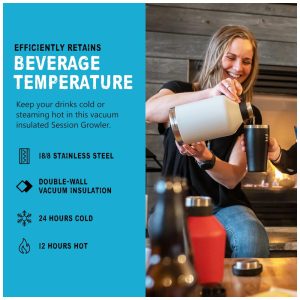 DESIGN PRONTO PARA AVENTURA O design leve e pronto para mochila, com fácil abertura para goles e alça de baixo perfil, torna o Session Growler pronto para qualquer aventura.