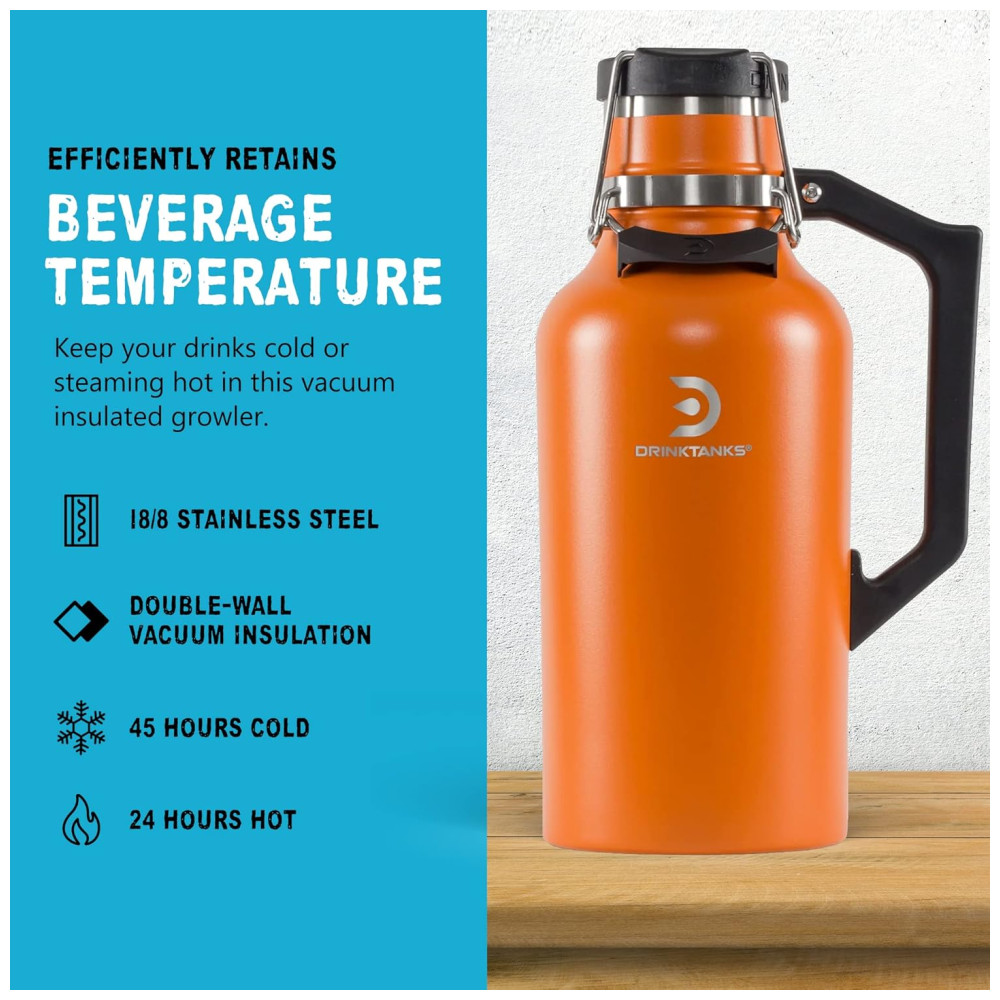 DrinkTanks Cooler Portátil para Garrafas de cerveja com Isolamento Duplo Aço Inox Laranja