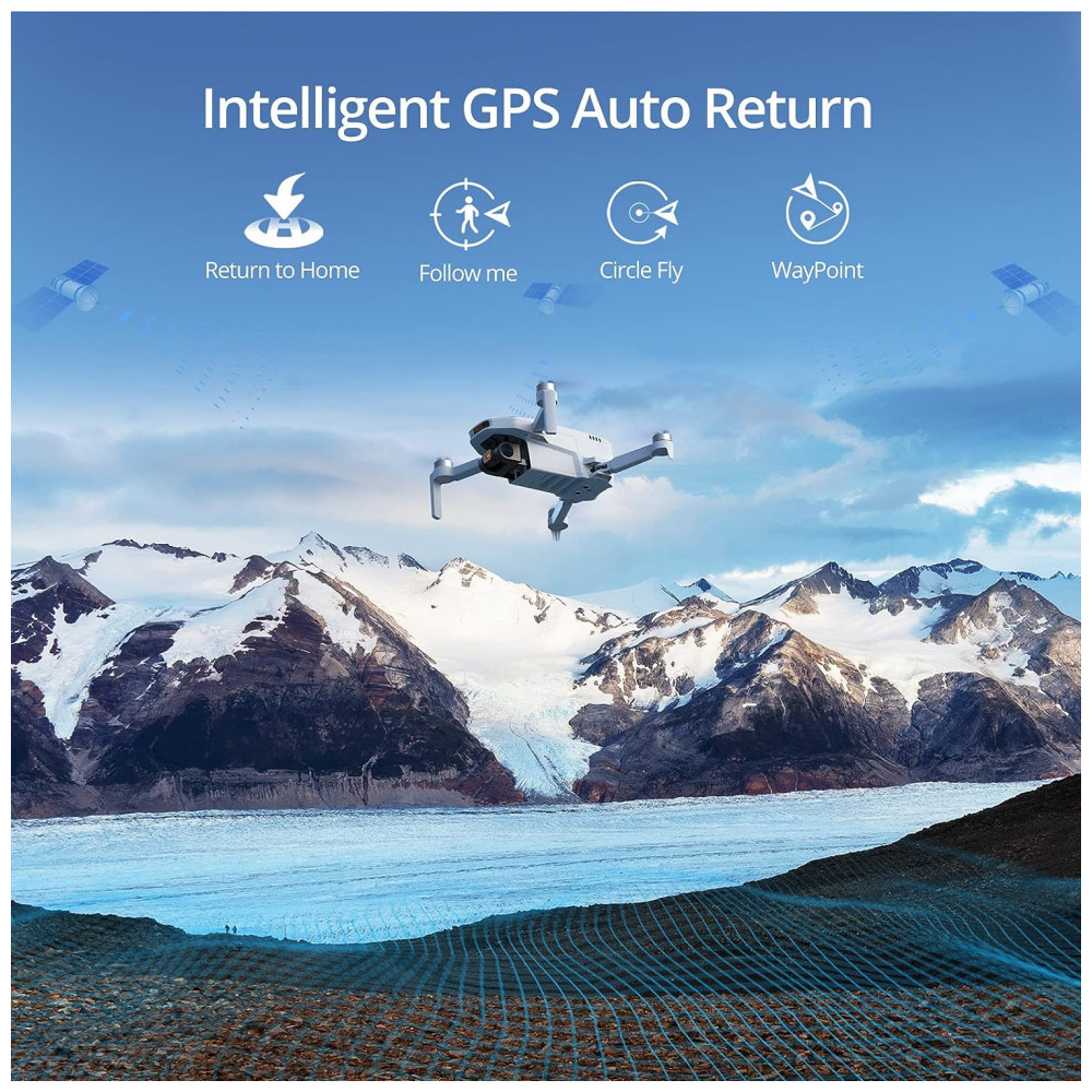 Funções assistidas por GPS O drone ATOM SE GPS possui um botão dedicado de retorno à casa que permite que o drone volte ao ponto de decolagem a qualquer momento. Juntamente com o aplicativo PotensicPro, você pode se divertir ainda mais com o drone Potensic Atom SE GPS, com recursos como Follow Me, Pontos de Interesse e Circle Flight. Mergulhe em mais possibilidades.