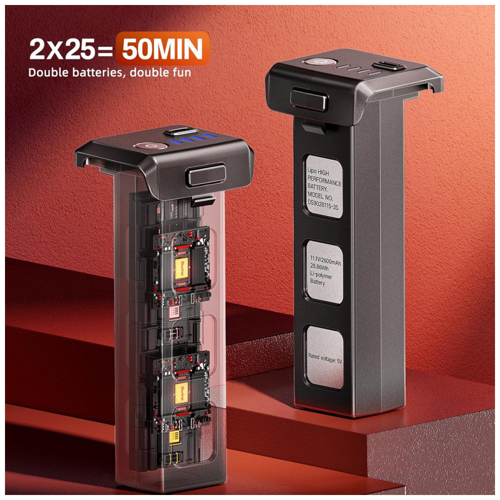 Componentes Inclusos: Maleta de transporte, Drone, Hélices extras, Manual, Controle remoto, Baterias sobressalentes,