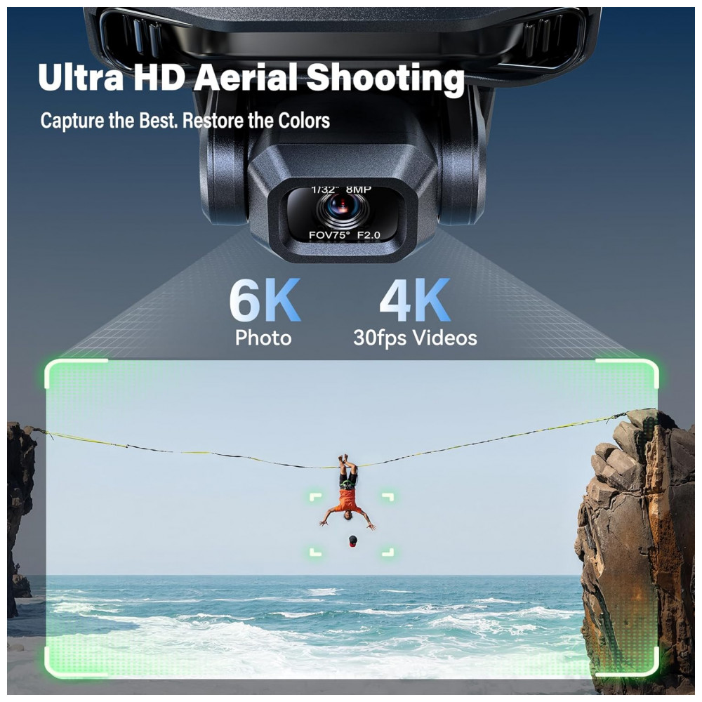 Desenvolvido com um inovador Design Estético Industrial, o Drone exclusivo Bwine F7GIM impressiona com seu Corpo de Textura Exclusiva e detalhes em laranja ousado nas hélices, redefinindo a estética tradicional de drones industriais. Combinando identidade visual marcante com desempenho aerodinamicamente otimizado, cada voo se torna um espetáculo visual. A câmera 6K Ultra HD com gimbal de 3 eixos e sensores profissionais importados captura fotos ultra nítidas em 6K e suporta gravação de vídeo 4K30fps, exibindo 30 imagens por segundo para suavidade de vídeo e mais detalhes. O gimbal de 3 eixos aumenta a estabilidade dinâmica deste drone em 60%, garantindo operação estável em ventos fortes ou cenas de alta velocidade, capturando paisagens deslumbrantes. Amigável para iniciantes, este drone com câmera oferece decolagem com um botão, retorno automático e outras funções que tornam a experiência segura e sem preocupações. O modo iniciante inteligente garante proteção automática de altura, permitindo voar com tranquilidade e adeus à ansiedade operacional! Equipado com 6 sensores de alta precisão TOF GPS, o radar de onda milimétrica aumenta estabilidade em baixas altitudes em 55%. Alcance Ultra de 10000 pés e 70 minutos de voo, com transmissão digital sem interrupções e tempo de voo dobrado em relação à média do setor. Inteligência aérea de nível profissional para capturas cinematográficas com um toque, modos inteligentes de GPS e modo noturno aprimorado.