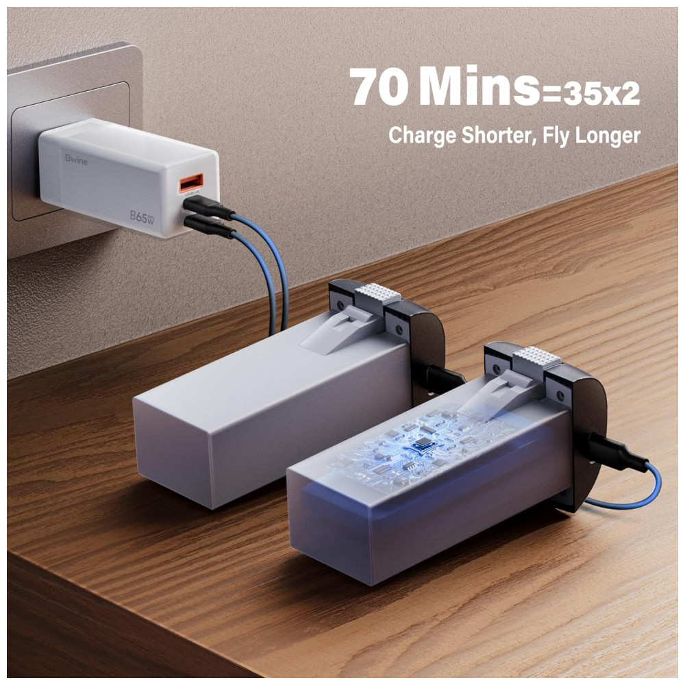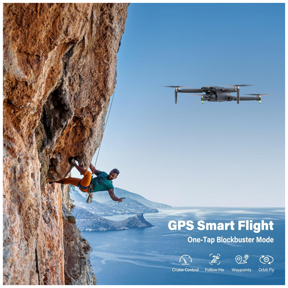 Recursos Especiais: Gimbal 3 Eixos, Zoom 5X, Lente Importada 6K UHD, Controle de Cruzeiro, Transmissão digital, 70 minutos de voo, Conformidade com a FAA, Voo inteligente com GPS, Retorno automático, me siga, voo circular, ponto de passagem, decolagem com um botão