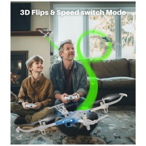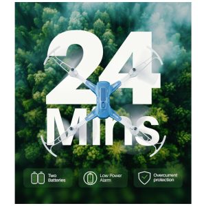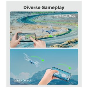 Explore uma variedade de recursos para crianças e adultos, como troca de velocidade, giros 3D, voo de trajetória, controle de gravidade e modo sem cabeça. Com duas baterias, este mini drone com câmera oferece até 24 minutos de tempo de voo e é fácil de carregar graças ao seu design modular.