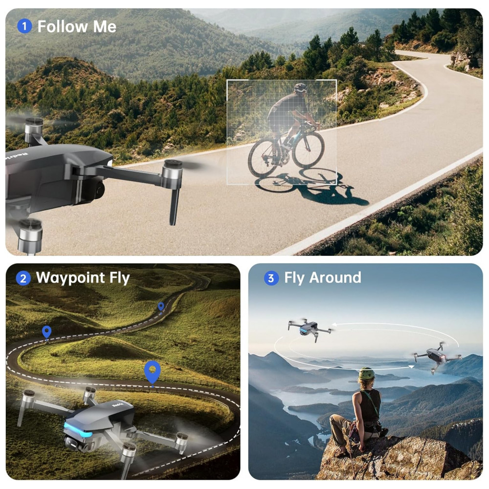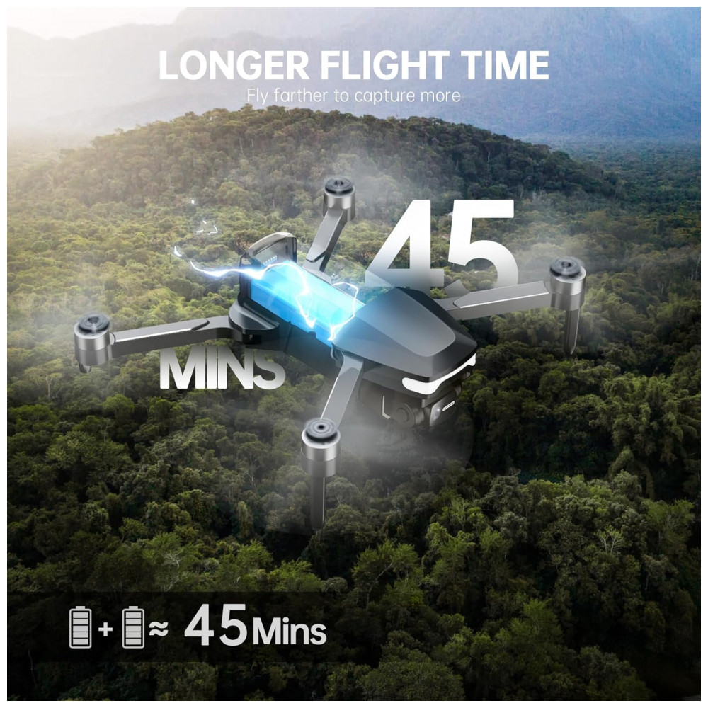 O Drone HK33 com Câmera Anti-Shake Ajustável possui uma lente grande angular F2.15 de 110° com redução física de vibração e um ajustador remoto de 90°, permitindo capturar a foto perfeita. Ele oferece imagens de alta resolução em 4096x3072P e grava vídeos em 2048x1088P, que podem ser salvos no cartão Micro SD ou diretamente no seu dispositivo móvel. Com transmissão de vídeo estável por WiFi 5G, o drone fornece uma distância de até 300 metros, podendo chegar a 500 metros com um repetidor embutido no controle remoto, permitindo explorar diversos terrenos e capturar fotos aéreas impressionantes com facilidade. Com duas baterias poderosas de 1800mAh, este drone oferece um tempo de voo total de 45 minutos, proporcionando tempo suficiente para filmagens aéreas ininterruptas. Adeus às preocupações com aterrissagens repentinas devido à bateria fraca. Com funções inteligentes GPS, como Retorno Automático, Seguimento GPS, Planejamento de Rotas e Voo em Torno, este drone garante uma experiência de voo segura e confiável. Os motores sem escova oferecem resistência ao vento de até nível 5, proporcionando estabilidade aprimorada em voo. Leve e portátil, o drone HK33 pesa menos de 250g, eliminando a necessidade de registro e oferecendo uma experiência de voo sem complicações. Seu design dobrável e estojo de transporte incluído facilitam o armazenamento e são altamente portáteis, perfeitos para aventuras ao ar livre.