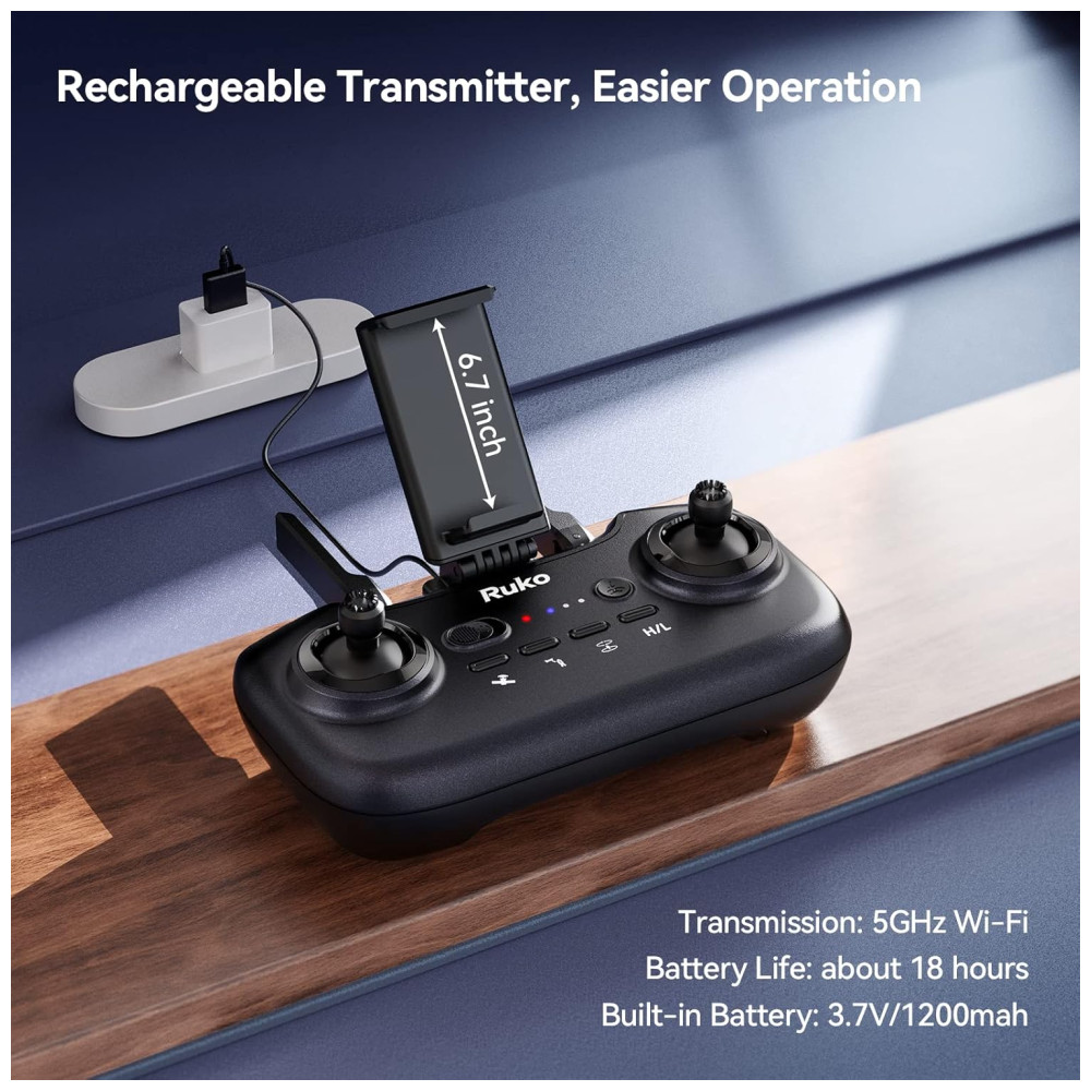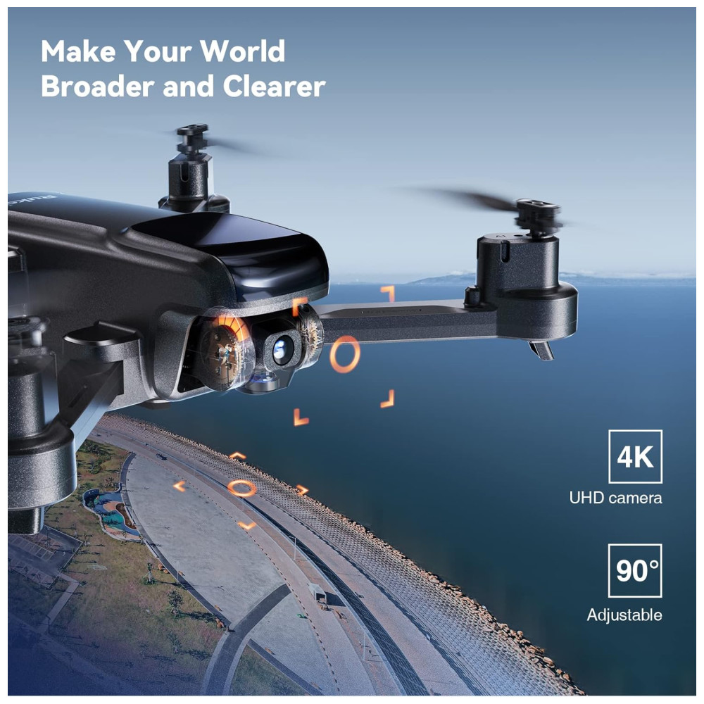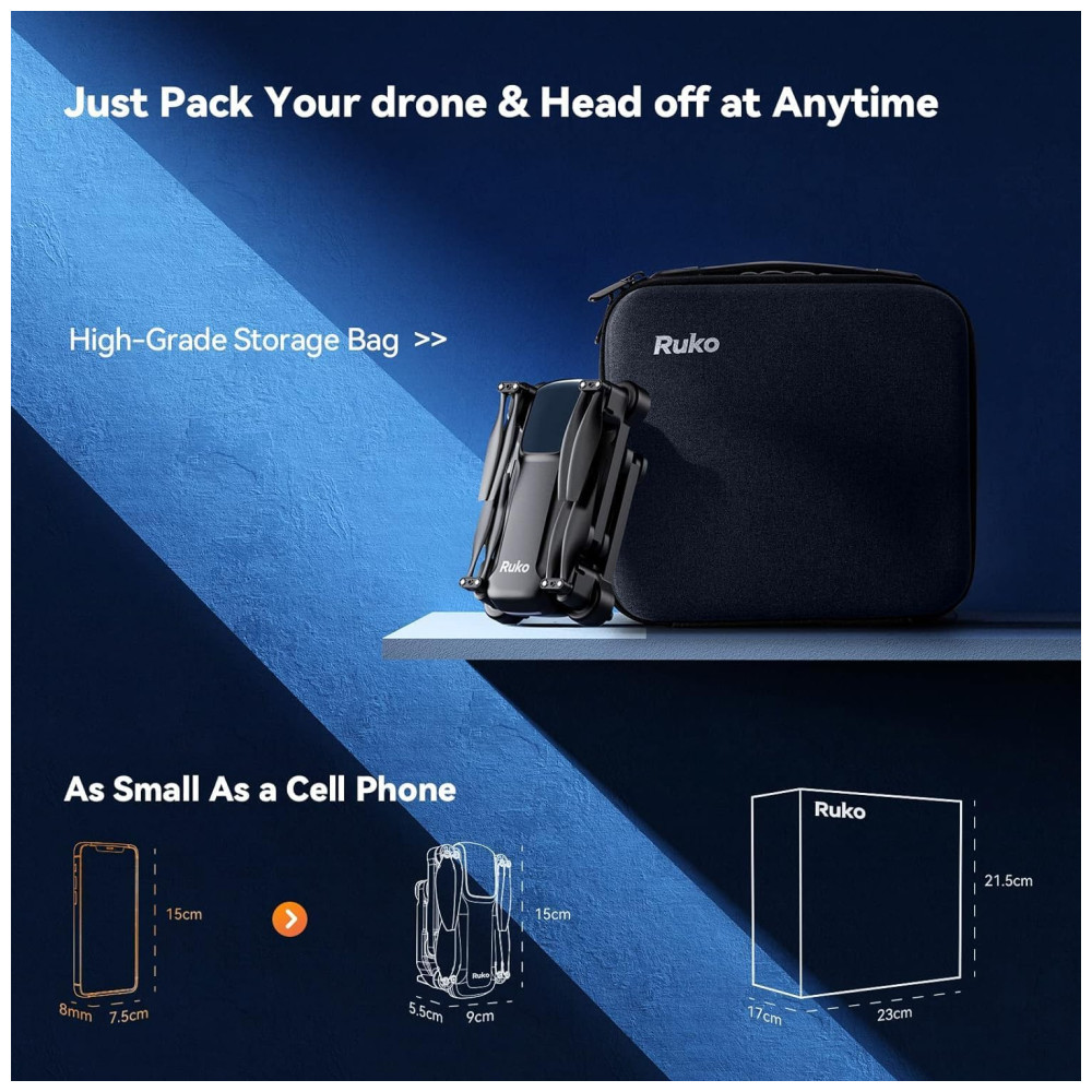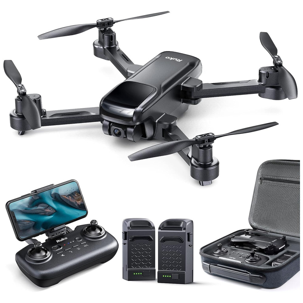 Drone com Câmera 4K para Adultos 40 Min de Voo e Retorno Automático 2 Bateria e Estojo de Transporte RUKO Preto