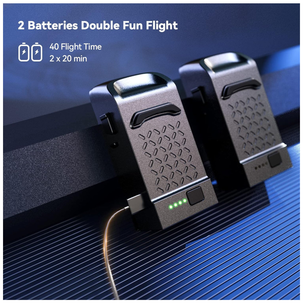 Uma bateria de voo inteligente fornece um tempo máximo de voo de 20 minutos. Mas fornecido com uma bateria extra, o drone Ruko prolongará o tempo de voo para 40 minutos 2 20 minutos, dobrando seu happy hour