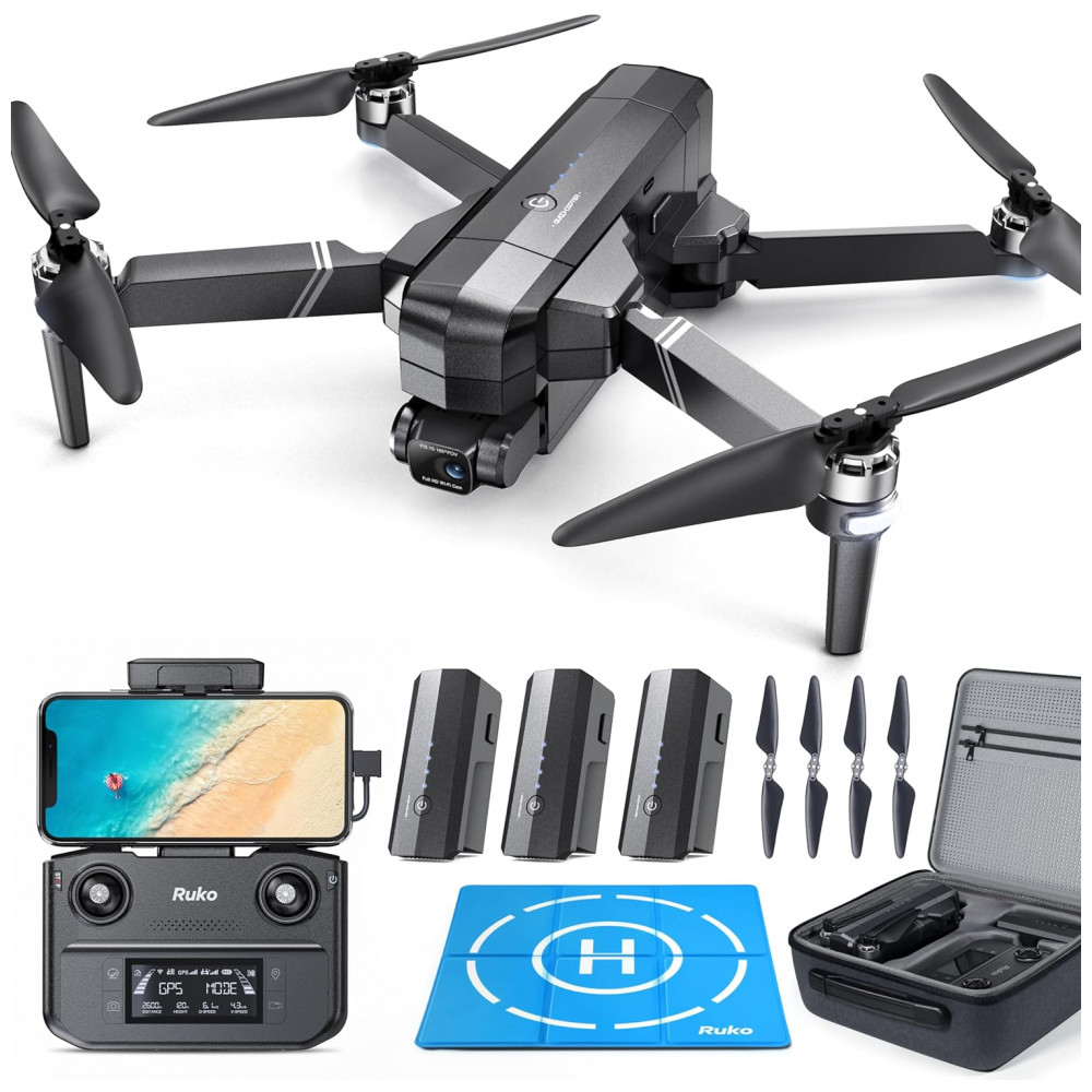 Drone com Câmera 4K para Adultos GPS Auto Retorno 84 Min de Voo e 3 Baterias Ruko F11GIM2 Preto