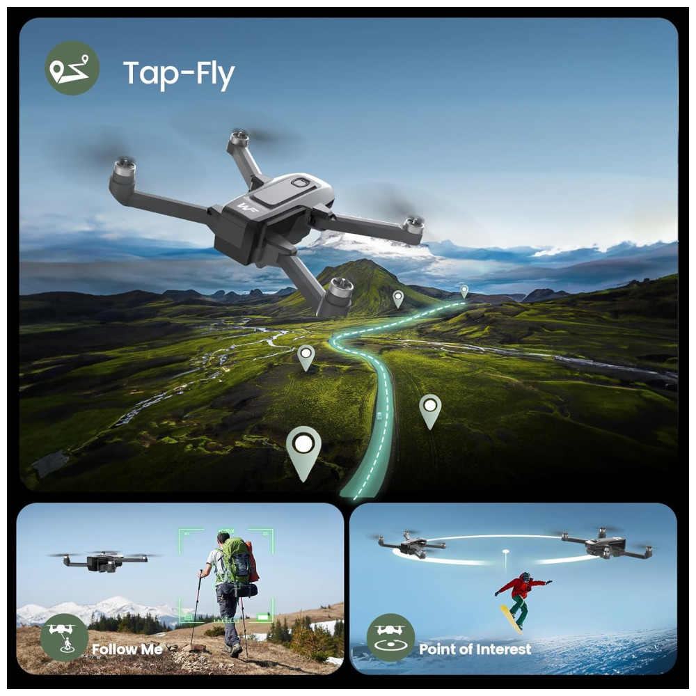 Ideal para iniciantes, este drone com câmera 4K para adultos oferece funções como retorno com uma tecla, alerta de bateria fraca e sinal fraco, além de recursos como o modo Follow Me, Waypoint Flight e Point of Interest, que permitem definir facilmente a trajetória de voo e a direção da câmera.