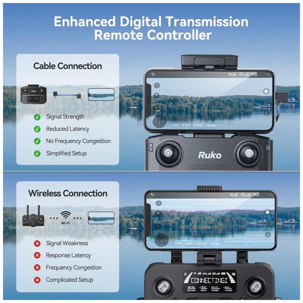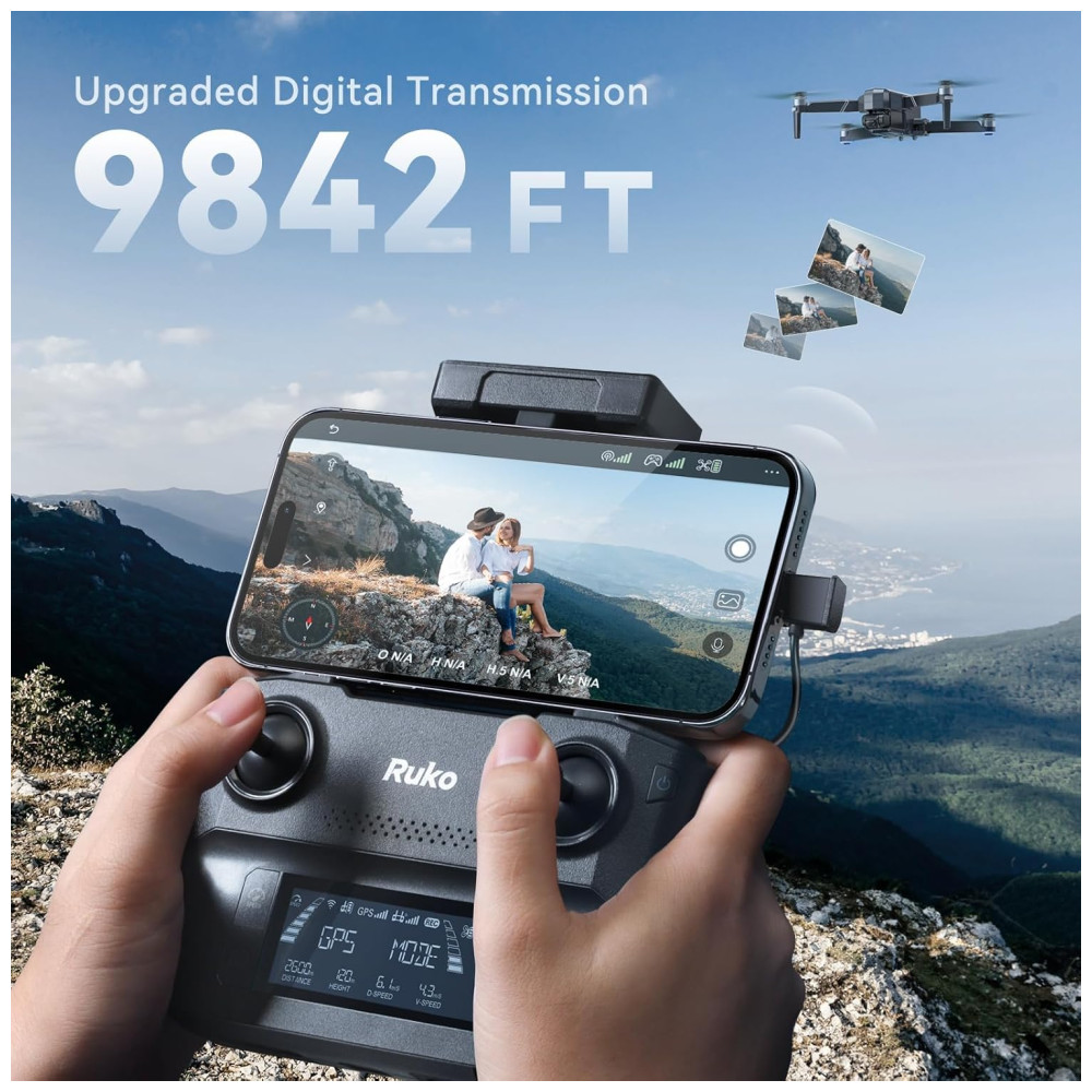Drone com Câmera 4K Transmissão HD 3000 Metros 2 Baterias RUKO F11 GIM2 Cinza