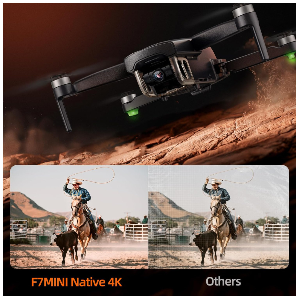 O drone GPS F7MINI é altamente portátil e oferece excelente desempenho. Equipado com uma câmera 4K UHD ajustável de 90 , ele pode tirar fotos incríveis de 40963072P e vídeos de 2,7k por meio do controle remoto ou do aplicativo. O drone também possui uma variedade de funções, como seguir me, voar em ponto de passagem, voar em círculo, decolagem e pouso com uma tecla, etc.