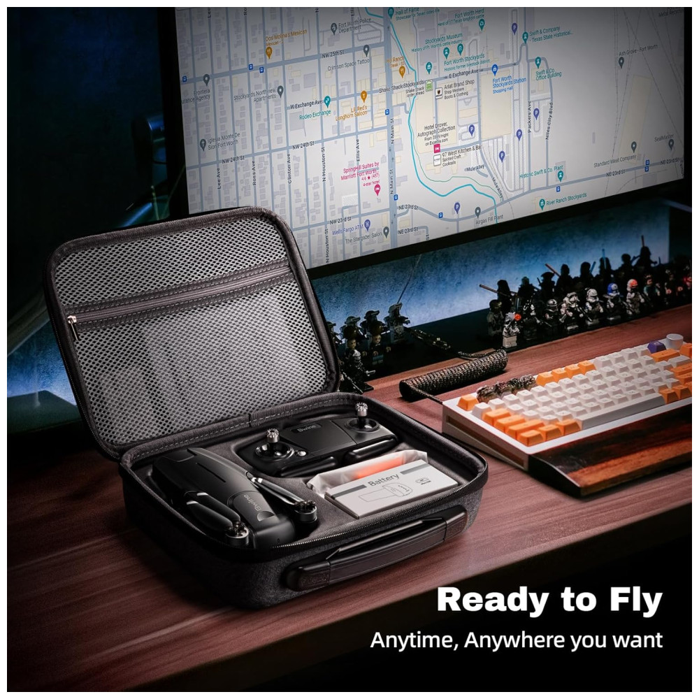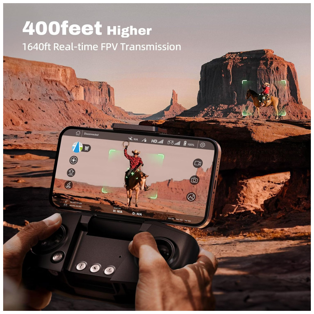 Recurso especial Planejamento de rota inteligente, interface de tela dividida VR, distância de voo de 498,48 metros, leve, dobrável, retorno com um botão, voo interno com fluxo óptico, tempo de voo estendido, sem necessidade de identificação remota da FAA, acompanhamento por GPS, voo ao redor, drone 4K com câmera para adultos