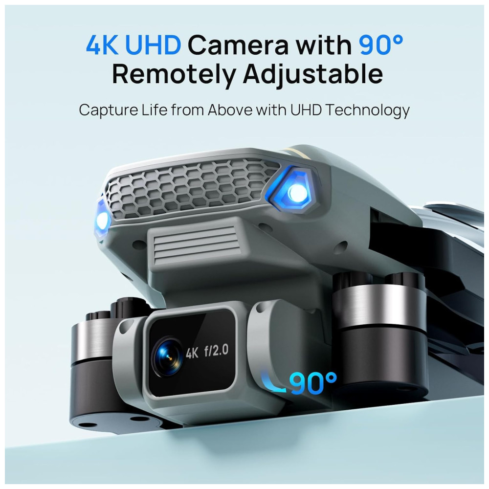 Drone com Câmera 4K UHD para Adultos S20 Lite Brushless Motor FPV RC Dobrável 36 Minutos de Voo Altitude Hold e Giros de 360° Ameta Cinza