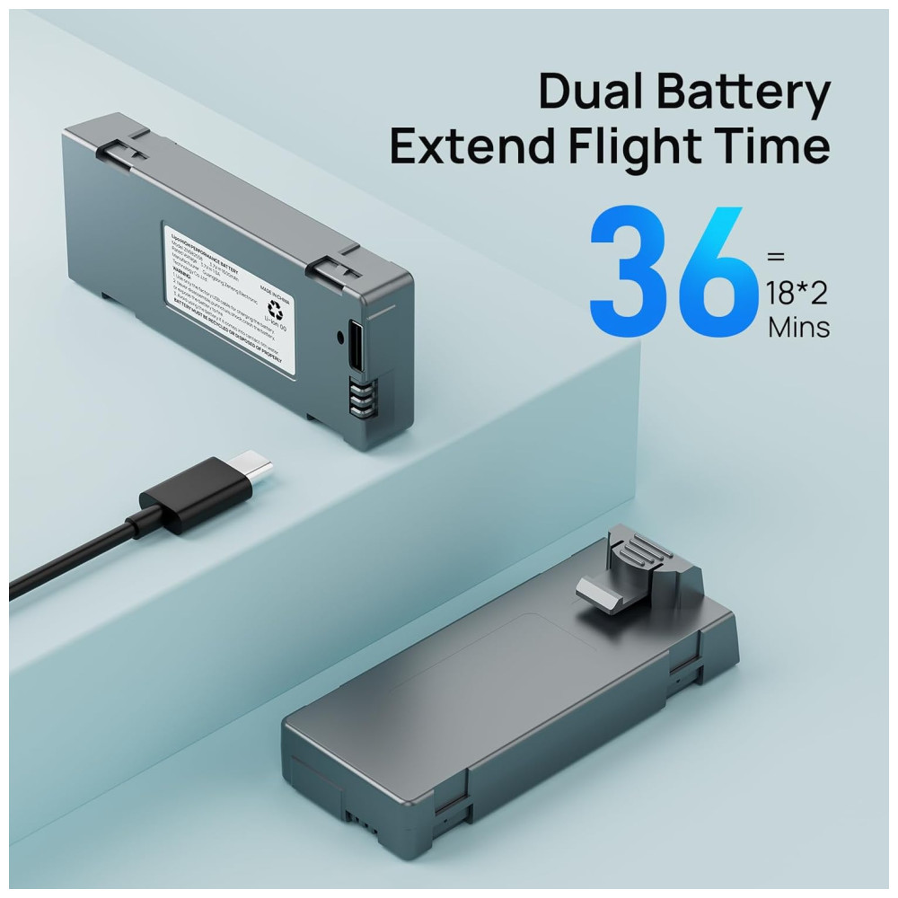 O Ameta S20 Lite 4K vem com duas baterias inteligentes, cada uma oferecendo até 18 minutos de voo, totalizando 36 minutos de exploração contínua. Equipado com motores brushless avançados, o drone garante desempenho potente e estabilidade aprimorada, proporcionando uma experiência de voo mais suave e estável, mesmo em condições desafiadoras.