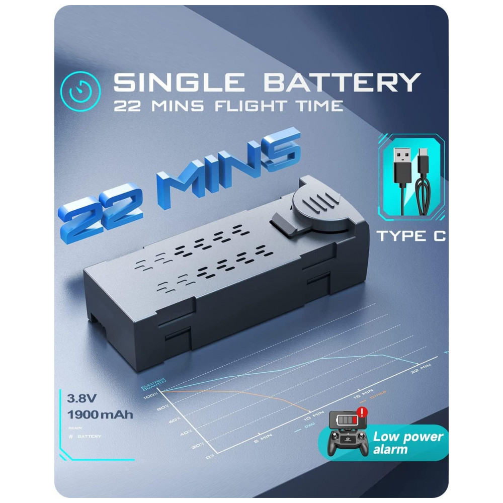 Tempo de voo incrivelmente longo Cansado de trocar as baterias entre os voos Não é o caso da D60 Um máx. tempo de voo de 22 min. com uma única bateria garante uma experiência de voo sem complicações. Também é equipado com mecanismo de proteção contra sobrecarga. Voe por mais tempo, carregue com mais segurança