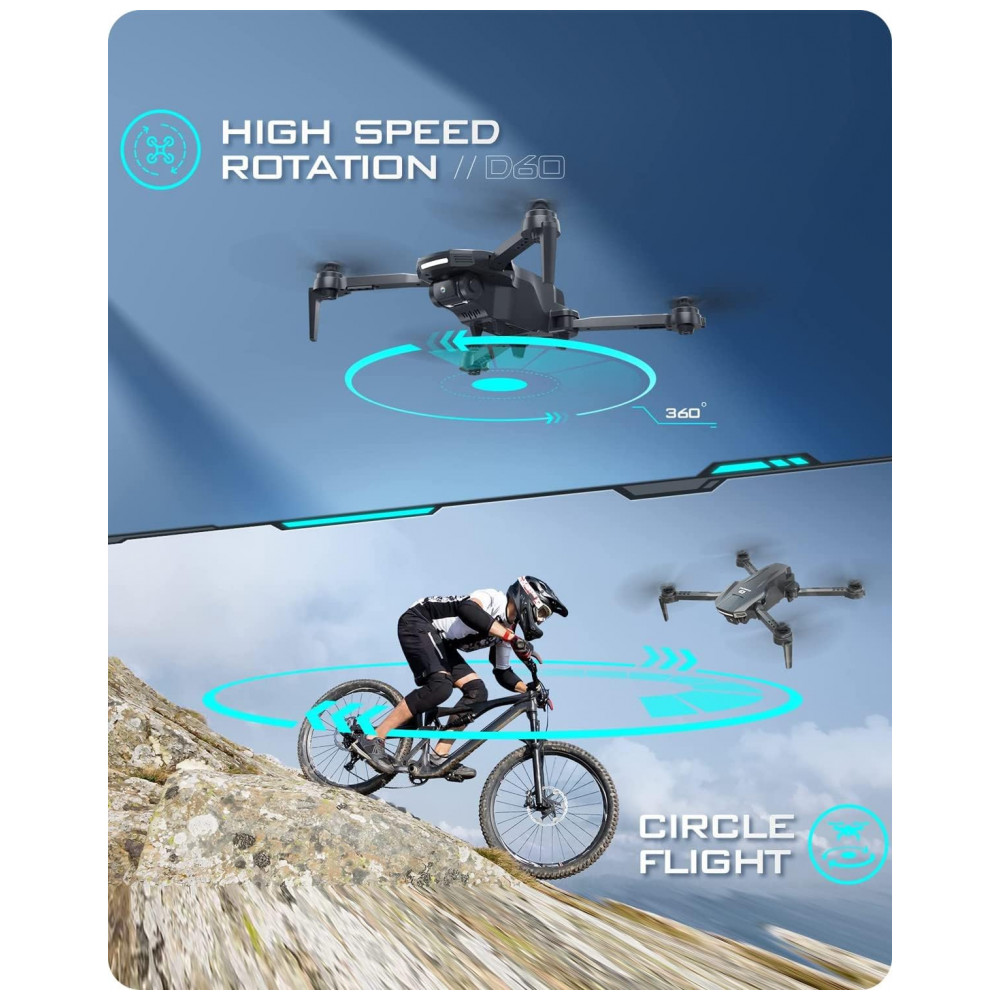 Uma estrada real para se tornar piloto profissional D60 é um excelente drone para iniciantes. Estas funções amigáveis para iniciantes Altitude Hold, Parada de emergência, Modo Headless, One Key Start, Land, Trim, 3 velocidades diferentes… Você também pode adicionar alguns toques interessantes aos seus vídeos aéreos através de funções como Circle e Auto Spin.The única limitação é a sua imaginação