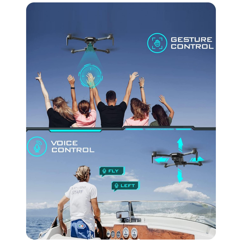Papel, tesoura Agora você tem a força para controlar a câmera do drone com a mão papel para iniciar a gravação e tesoura para tirar uma foto. Ou faça o responder a comandos de voz simples com a função de controle de voz. O futuro é agora, essas funções inteligentes farão seus amigos uau.