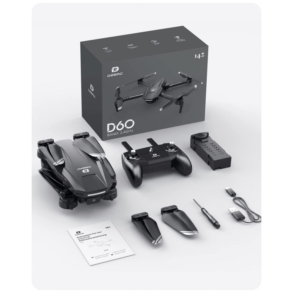 Drone com Camera HD 1080P para Crianças e Adultos DEERC D60 Preto