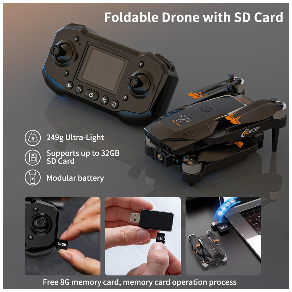 Drone com Câmera para Adultos Drones em HD 1080P com Controle de Tela LCD e Cartão SD de 8GB suangrc