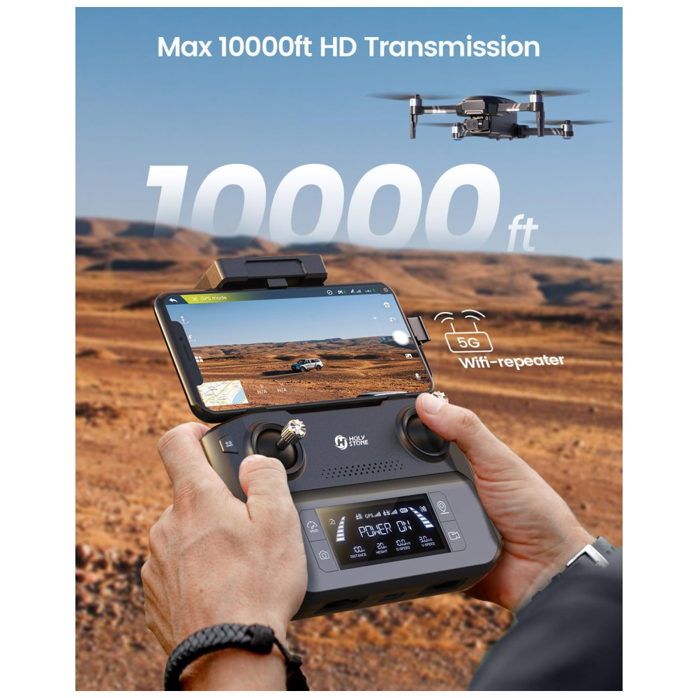 Drone e Acessórios para Adultos com Câmera 4K EIS Transmissão de Vídeo 4K/30 FPS até 3 km ID Remoto Integrado e Motores Sem Escova Holy Stone HS600 Preto