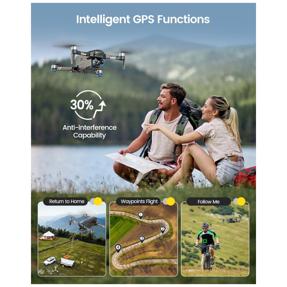 Leve e portátil, o drone vem com um estojo de transporte e suporta ventos de até nível 6, oferecendo versatilidade para diferentes condições de voo. A função GPS inteligente inclui recursos como retorno com uma tecla, retorno automático em caso de perda de sinal e retorno por bateria fraca, garantindo uma experiência de voo segura e tranquila.