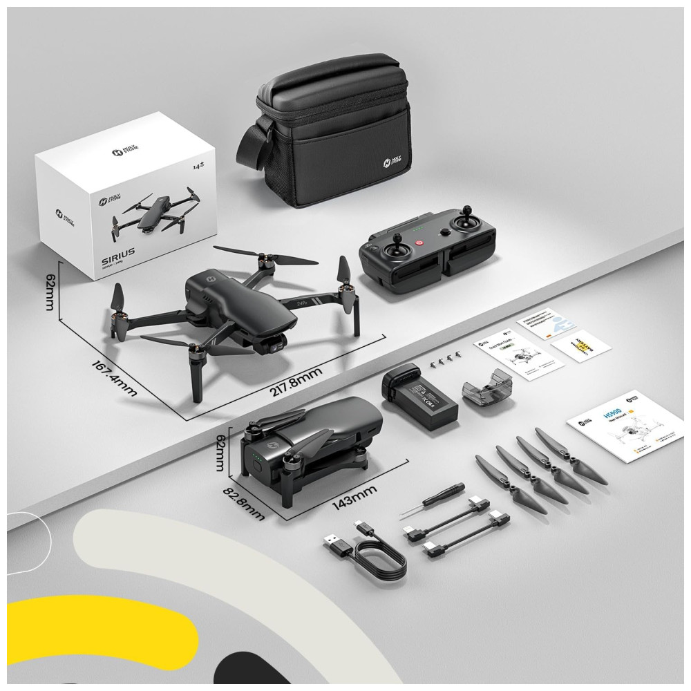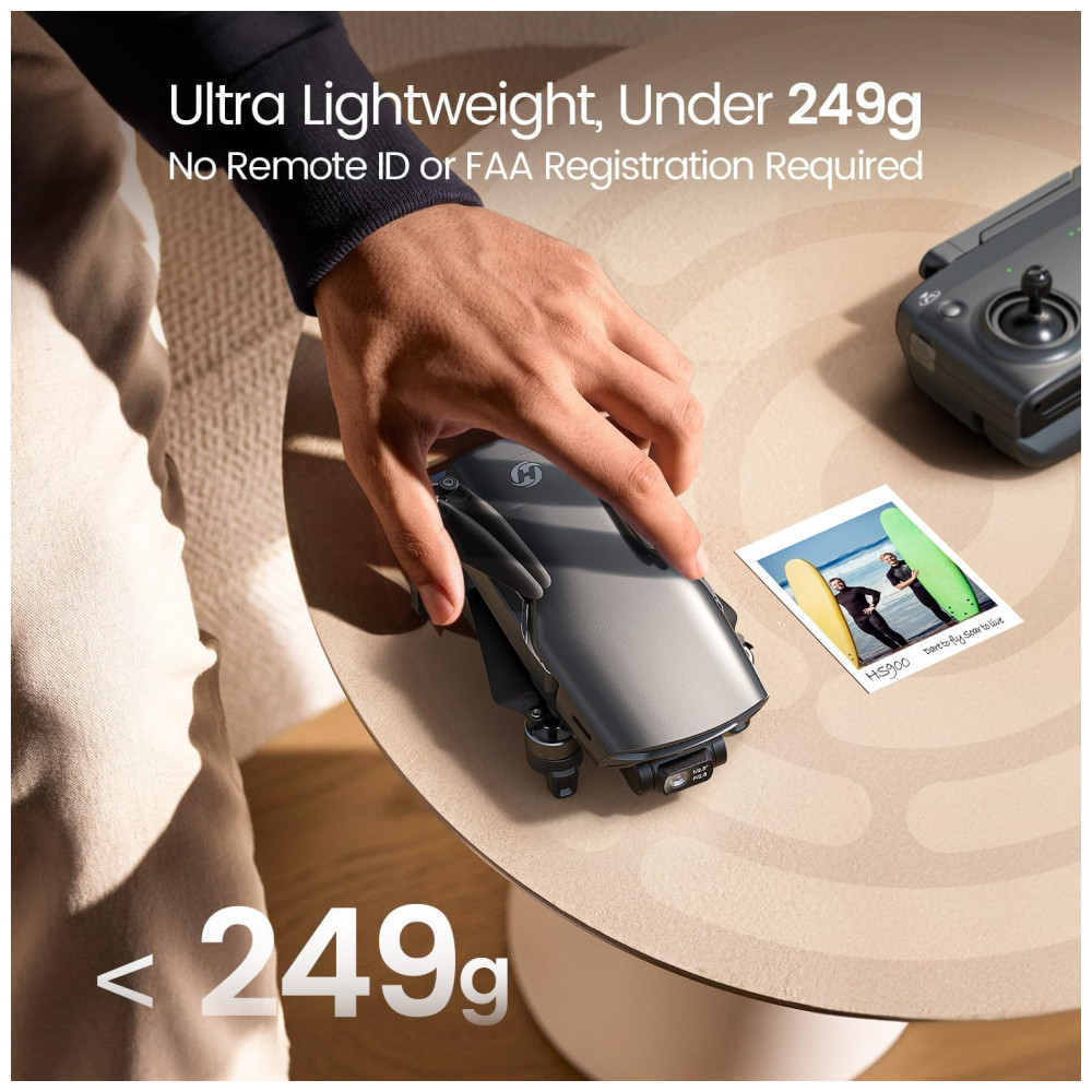 Conheça o drone Holy Stone HS900 GPS 4K, um equipamento leve e potente com design moderno da marca. Com apenas 249 gramas, o HS900 não requer registro FAA ou identificação remota nos Estados Unidos.