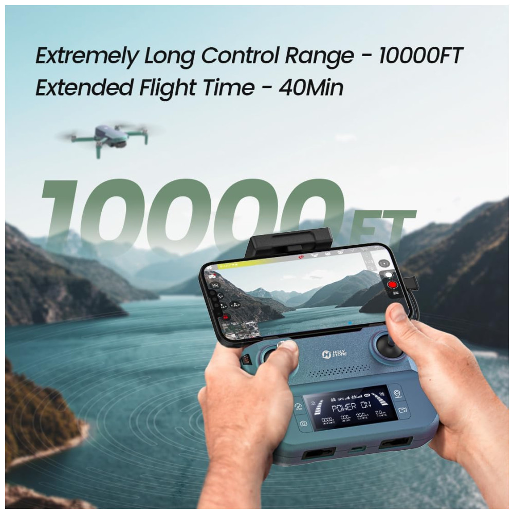 Drone e Acessórios para Adultos com Câmera 4K Transmissão de Vídeo até 3 km Retorno Automático Função Seguir e Motor Sem Escova Holy Stone Verde Gradiente