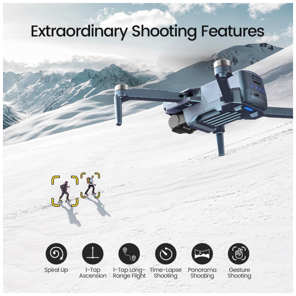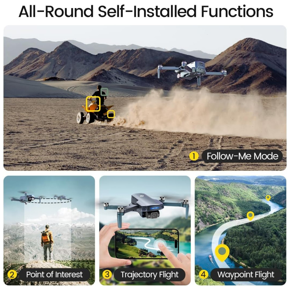 Características especiais: Drone com câmera UHD 4K, fotografia com lapso de tempo, GPS Follow Me, retorno automático, leve, sem necessidade de identificação remota FAA, drones com câmera para adultos 4K e transmissão FPV de 3 km.