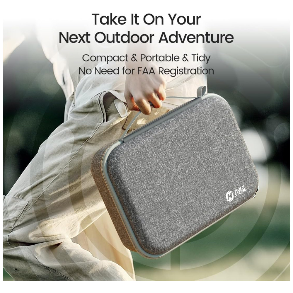 Leve e compacto, o drone Holy Stone 4K é dobrável e acompanha uma bolsa de transporte, perfeita para suas aventuras ao ar livre, seja em caminhadas ou na praia. O aplicativo Holy Stone HS Fly continua a aprimorar as funções do HS360S Special Edition GPS 4K, proporcionando uma experiência de voo e qualidade de filmagem cada vez melhores.