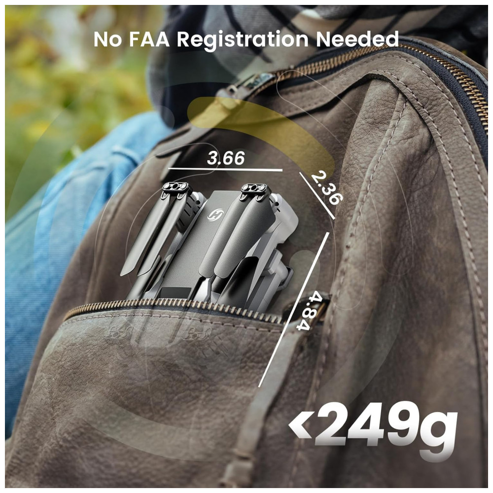 Seu design prático inclui uma bolsa de transporte e é dobrável, tornando-o fácil de guardar e extremamente portátil para suas viagens ao ar livre. Com menos de 250g, você está dispensado do registro FAA.