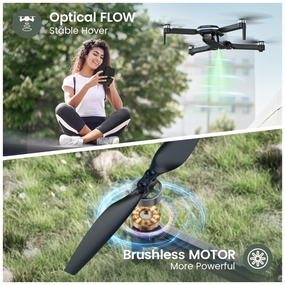 A transmissão FPV (First Person View) em tempo real permite compartilhar momentos felizes com familiares e amigos instantaneamente. Seus motores sem escova oferecem maior resistência ao vento, proporcionando voos rápidos, silenciosos e potentes, além de evitar o superaquecimento dos motores em voos prolongados.