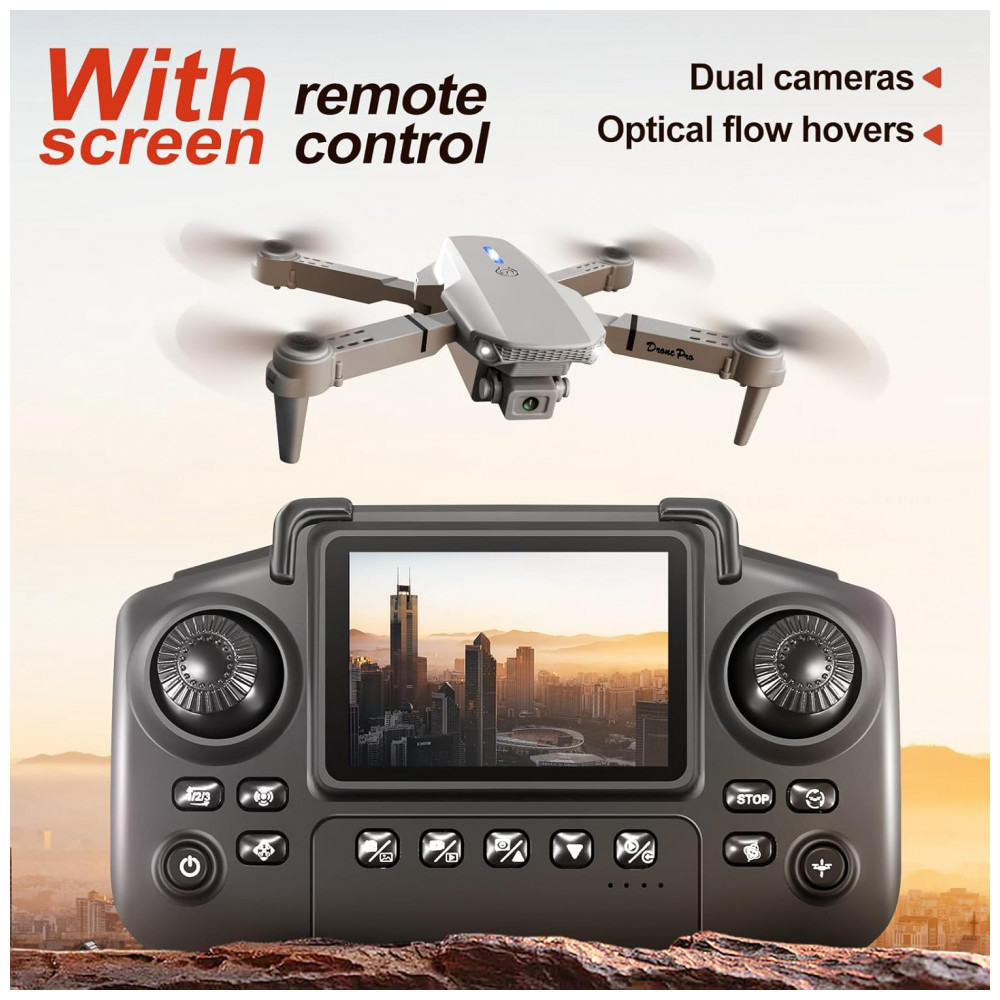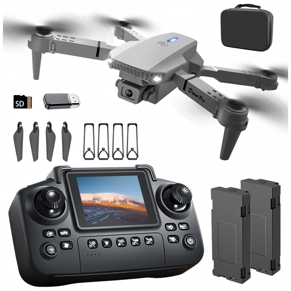 Drone E88 com Controlador de Tela Cartão SD Drone Mini Dobrável para Iniciantes 2 Baterias Voo de Ponto a Ponto 360º Elecci