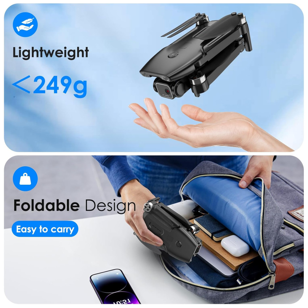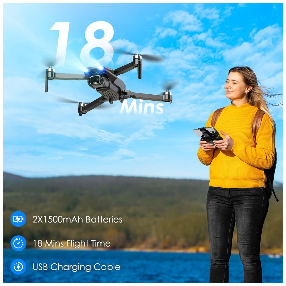 Com duas baterias inteligentes, cada uma proporcionando até 20 minutos de voo, o drone tem alcance de controle de até 99,7 metros, permitindo explorar grandes distâncias. Seu design dobrável facilita o transporte, e o estojo de armazenamento incluso torna-o ainda mais prático e compacto para levar aonde você quiser.