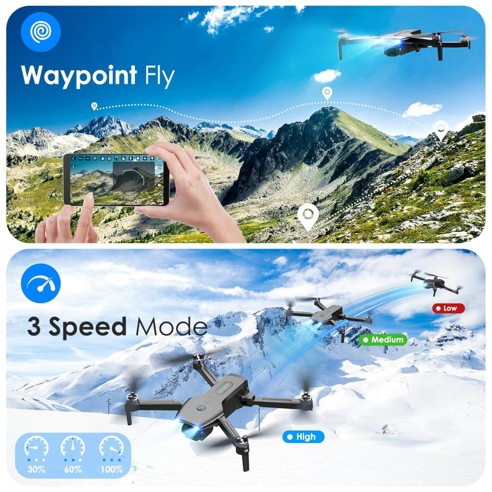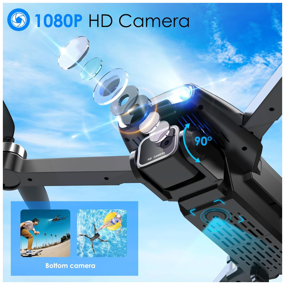 Drone FPV 1080P com 2 Baterias Motor Sem Escova Giros 360° Ponto de Referência e Dobrável para Crianças LNNKINE Preto