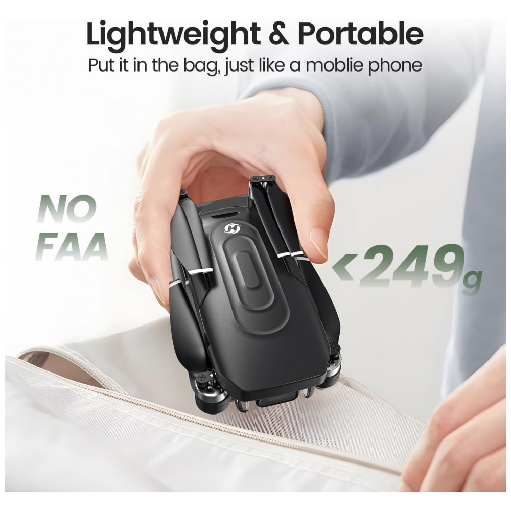 O Drone Holy Stone HS175G é uma versão aprimorada do drone Holy Stone HS175D, projetado especificamente para adultos, apresentando uma câmera 4K EIS que oferece qualidade de imagem excepcional e estabilização de vídeo mais suave. Equipado com Sensor CMOS da SONY, lente grande angular e inclinação ajustável, o drone HS175G proporciona imagens de alta resolução para capturar o momento perfeito. Com voo assistido por GPS, o drone Holy Stone HS175G pode retornar automaticamente para casa em caso de sinal perdido, fora de alcance ou bateria fraca, garantindo que você nunca o perca. Incluindo duas baterias para até 60 minutos de voo total, o drone HS175G evita longos períodos de recarga. Com recursos para iniciantes e design dobrável, torna-se prático para armazenar e transportar. Além disso, possui funcionalidades como seguir-me, voo pré-definido, círculo em ponto específico e parada de emergência, garantindo uma experiência de voo segura e divertida. Com motores brushless robustos e modo de velocidade dupla, o drone HS175G oferece potência e desempenho impressionantes. O aplicativo HS Fly mantém as funções do Drone Holy Stone HS175G sempre melhorando, aprimorando sua experiência de voo e qualidade de captura.