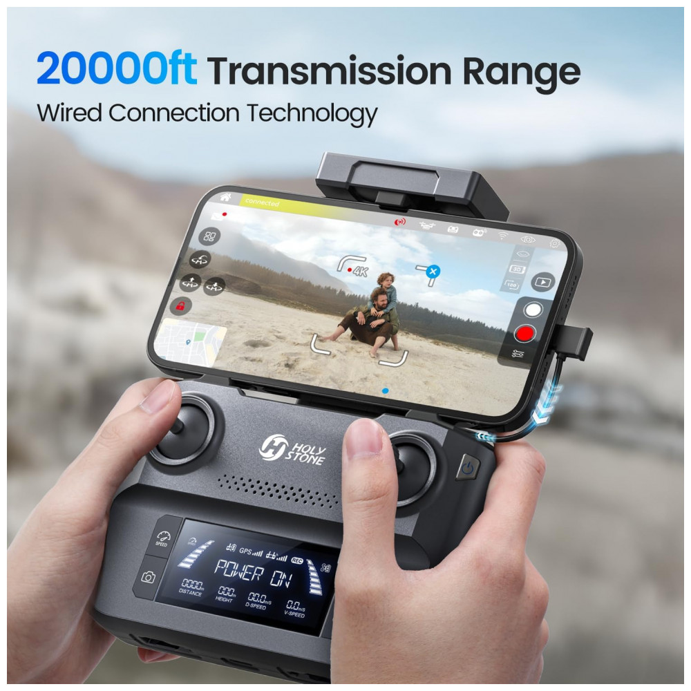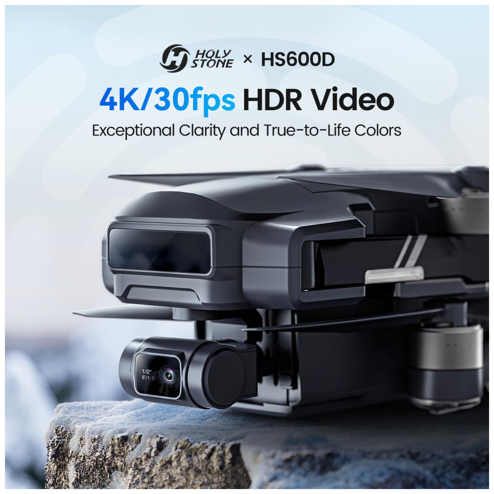 O Drone Holy Stone HS600D é uma versão aprimorada do drone HS600, voltado para adultos em busca de maior qualidade de imagem e estabilidade. Equipado com uma câmera 4k EIS de 3 eixos para imagens deslumbrantes. Compatível com FAA Remote ID, oferece até 80 minutos de voo com duas baterias. A transmissão de imagem aprimorada proporciona maior alcance e conexão mais estável. Do iniciante ao profissional, o HS600D permite transições suaves, com funções criativas e experiência de voo excepcional.