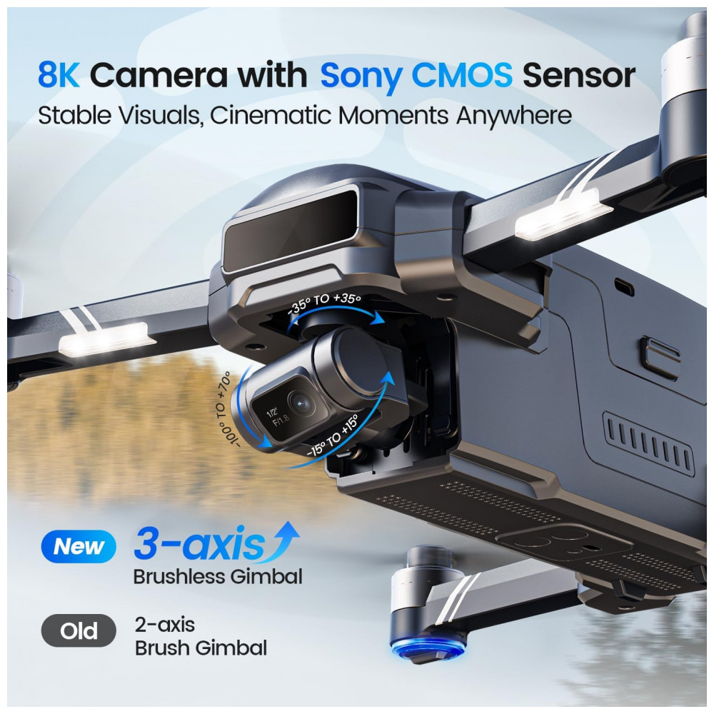 Drone Holy Stone HS600D com Câmera 8K para Adultos Gimbal de 3 Eixos Vídeo 4K30fps Imagem de 48MP Autonomia de Voo de 80 Min com 2 Baterias