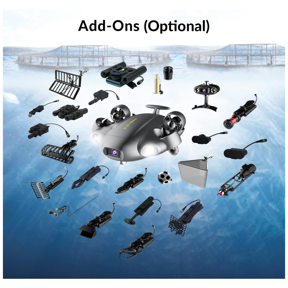 Integrações de várias ferramentas a interface e a porta de acessórios do FIFISH V6 EXPERT ROV permitem a integração com uma ampla gama de mais de 20 ferramentas de nível profissional e específicas do setor para cenários e tarefas específicas, desde explorações de mergulho até trabalhos offshore e muito mais.