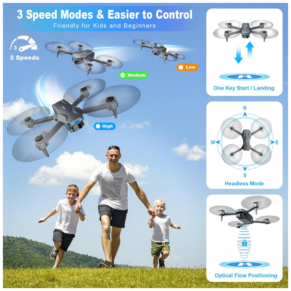 Drones com Câmera 1080P HD para Adultos – Drone Dobrável com Estojo de Transporte – Drones para Crianças com Decolagem e Pouso Fáceis Velcase