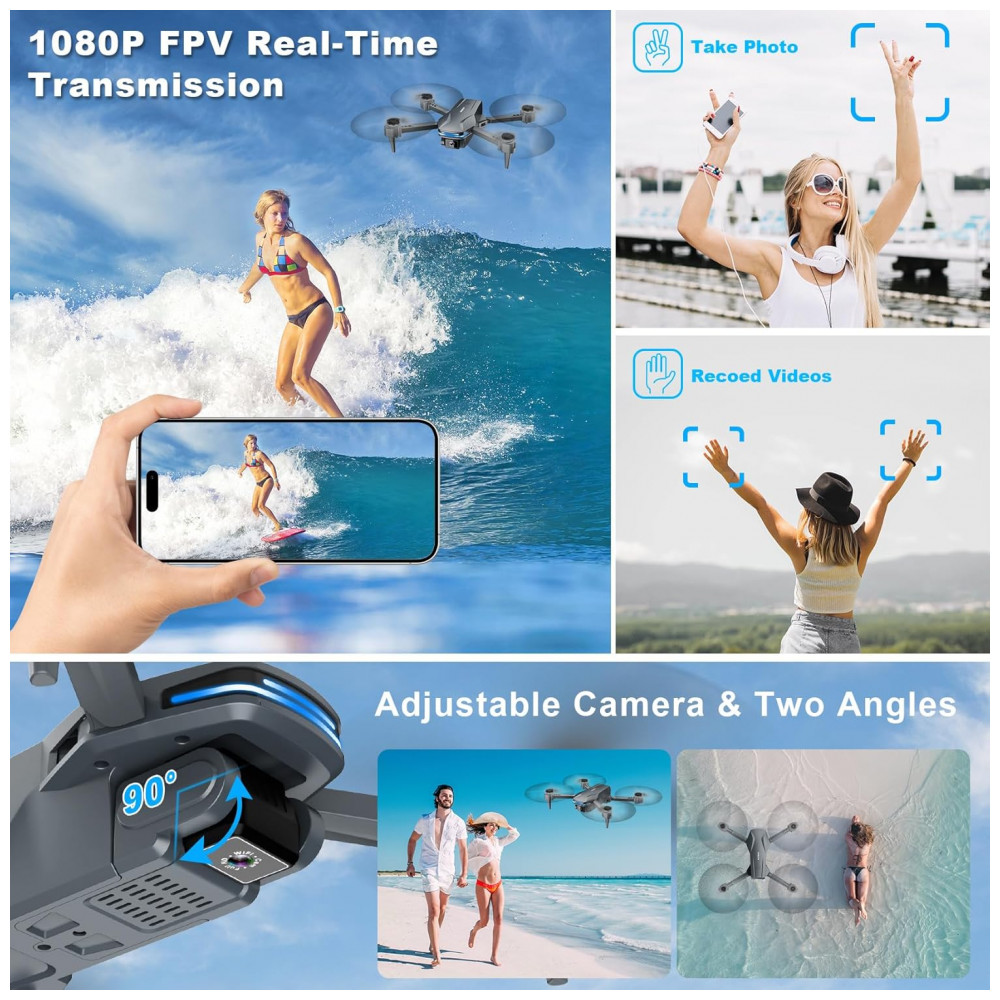 Recursos Especiais: Câmera HD 1080P, Drone FPV Ajustável, Controle via App, Múltiplas Funções para Iniciantes, Design Dobrável, Decolagem/Pouso com um Toque, Posicionamento de Fluxo Óptico