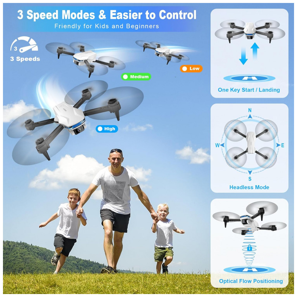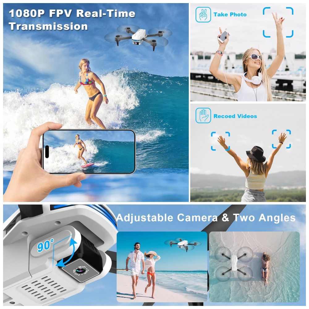 Capture momentos incríveis da vida com o Drone FPV de Câmera HD 1080P ajustável. Conecte-se ao aplicativo ‘Velcase VGO’ para controlar o drone e assistir ao feed de vídeo em tempo real. Possui posição de fluxo óptico, altitude barométrica, vários modos de voo, decolagem/pouso de um toque, flips de 360°, controle de gestos e aviso de bateria fraca. Design dobrável com acessórios completos, incluindo bolsa portátil, baterias extras e proteções. Voe com facilidade e segurança!