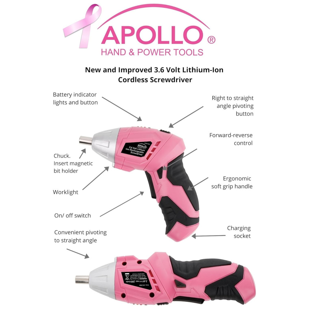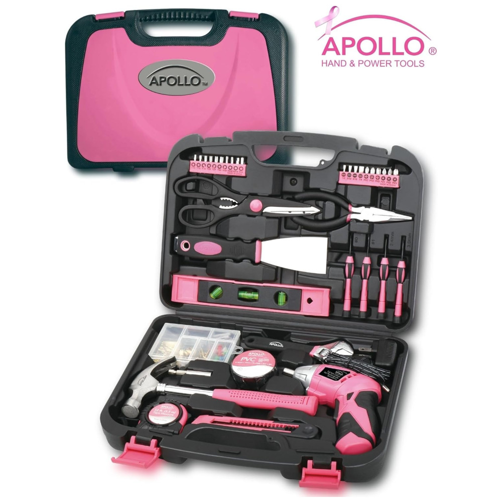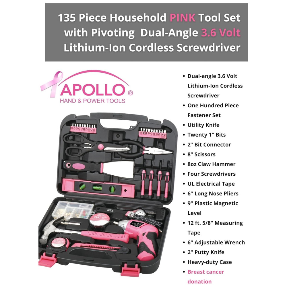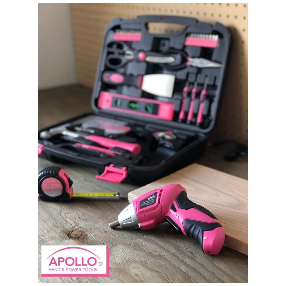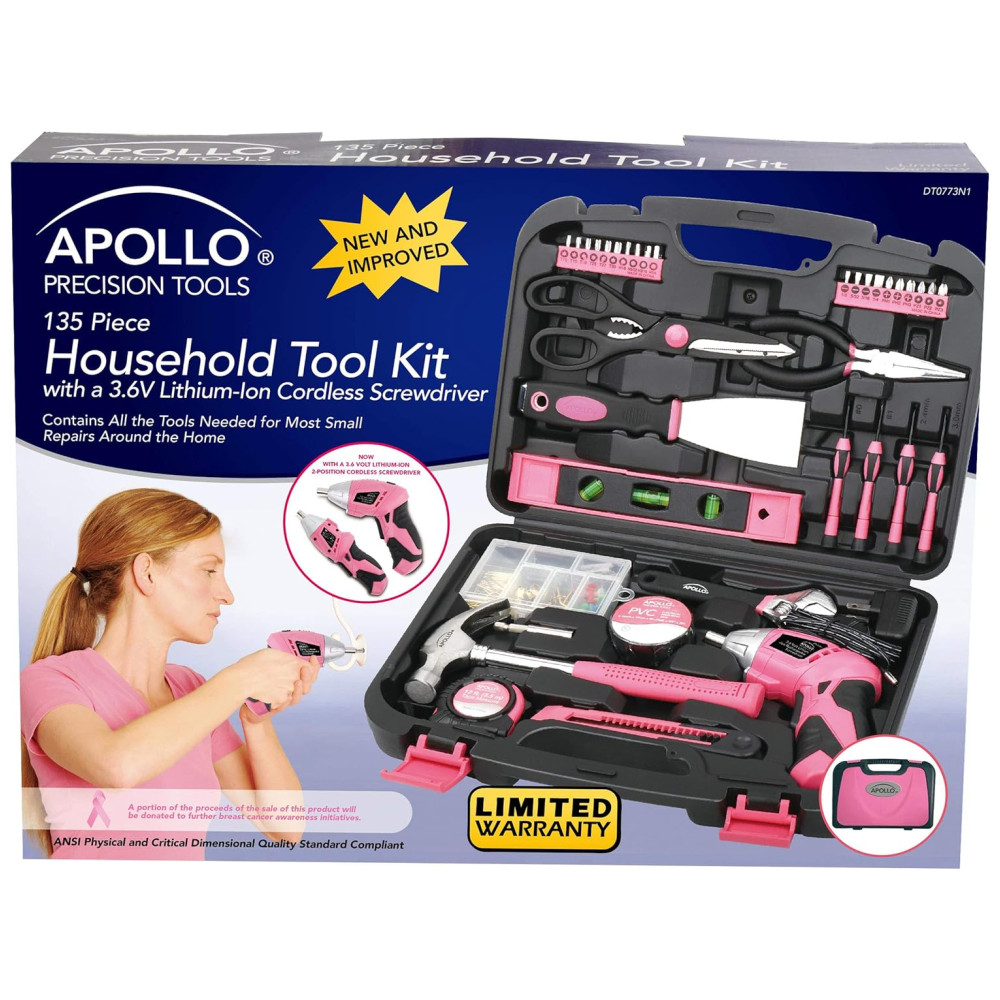DT0773N1 Kit de Ferramentas com Maleta de Transporte e Parafusadeira 135 Peças 110v APOLLO TOOLS P Rosa