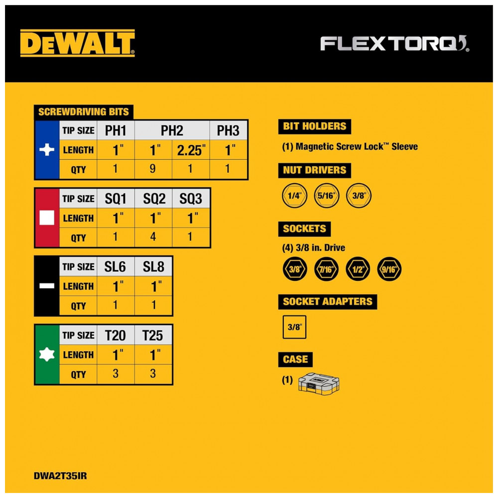 DWA25IR Kit Brocas de Chaves 35 Peças com Estojo DEWALT DWA25IR Amarelo