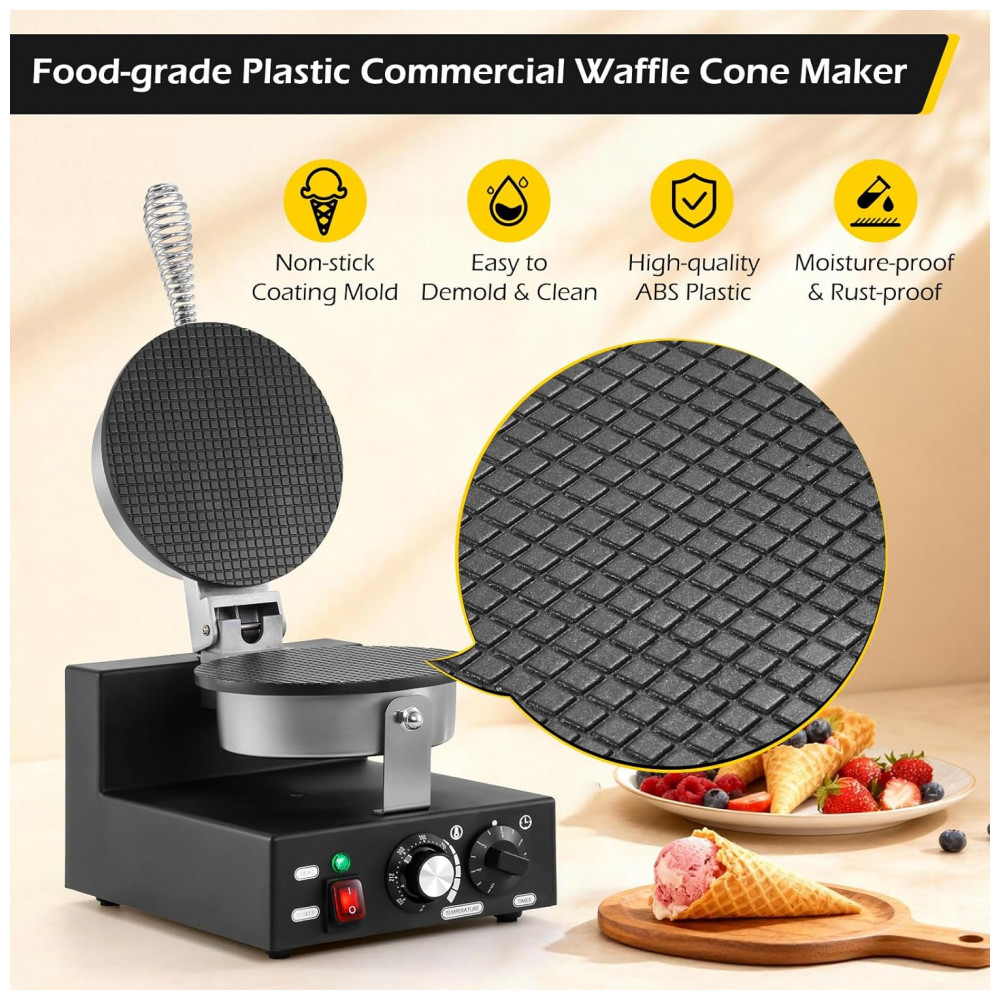 Dyna-Living Máquina Profissional de Casquinha de Sorvete 1200W com Revestimento Antiaderente e Controle Preciso para Sorvetes e Rolos